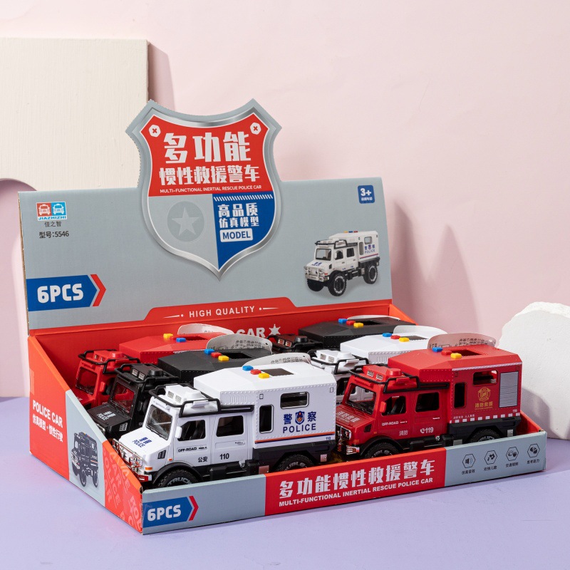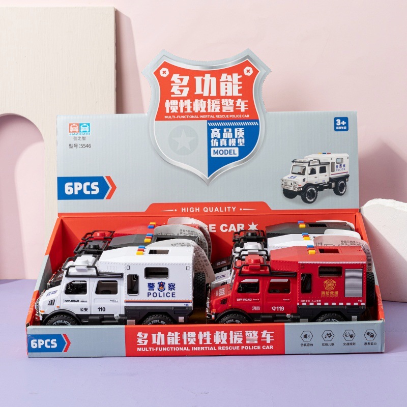 관성 어린이 이야기 버전 경찰차 구조 자동차 소리와 가벼운 음악 장난감 자동차 모델 가벼운 소년 장난감스토어 가기