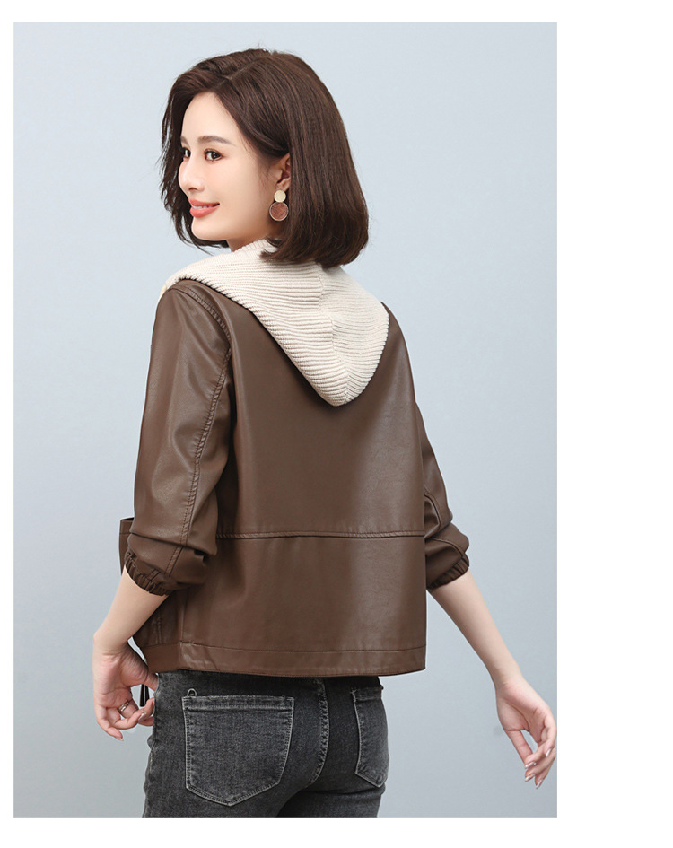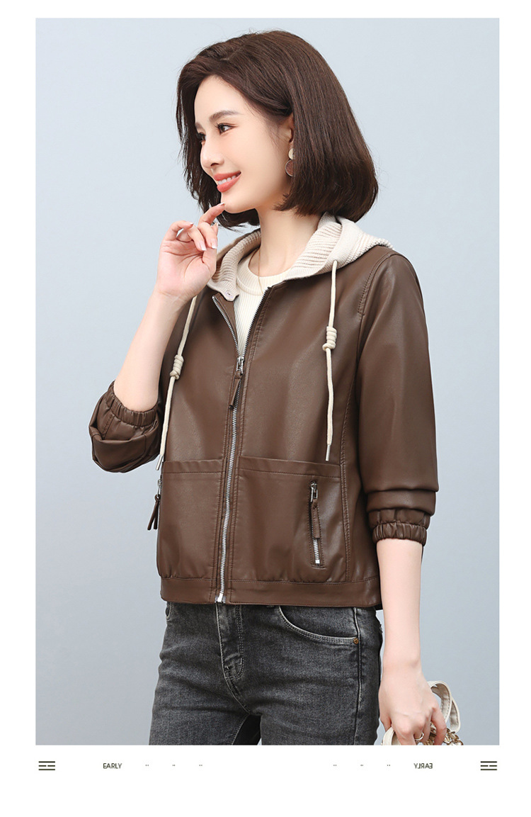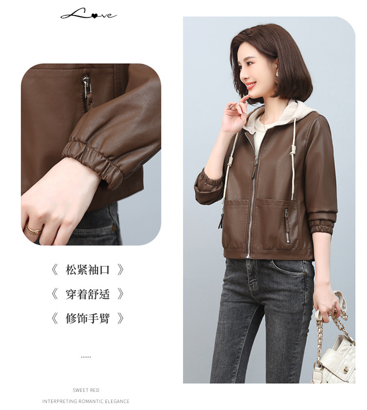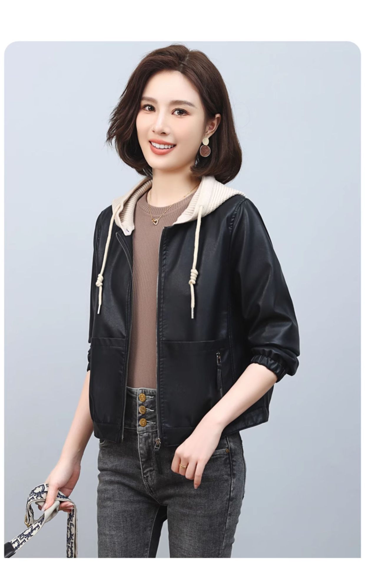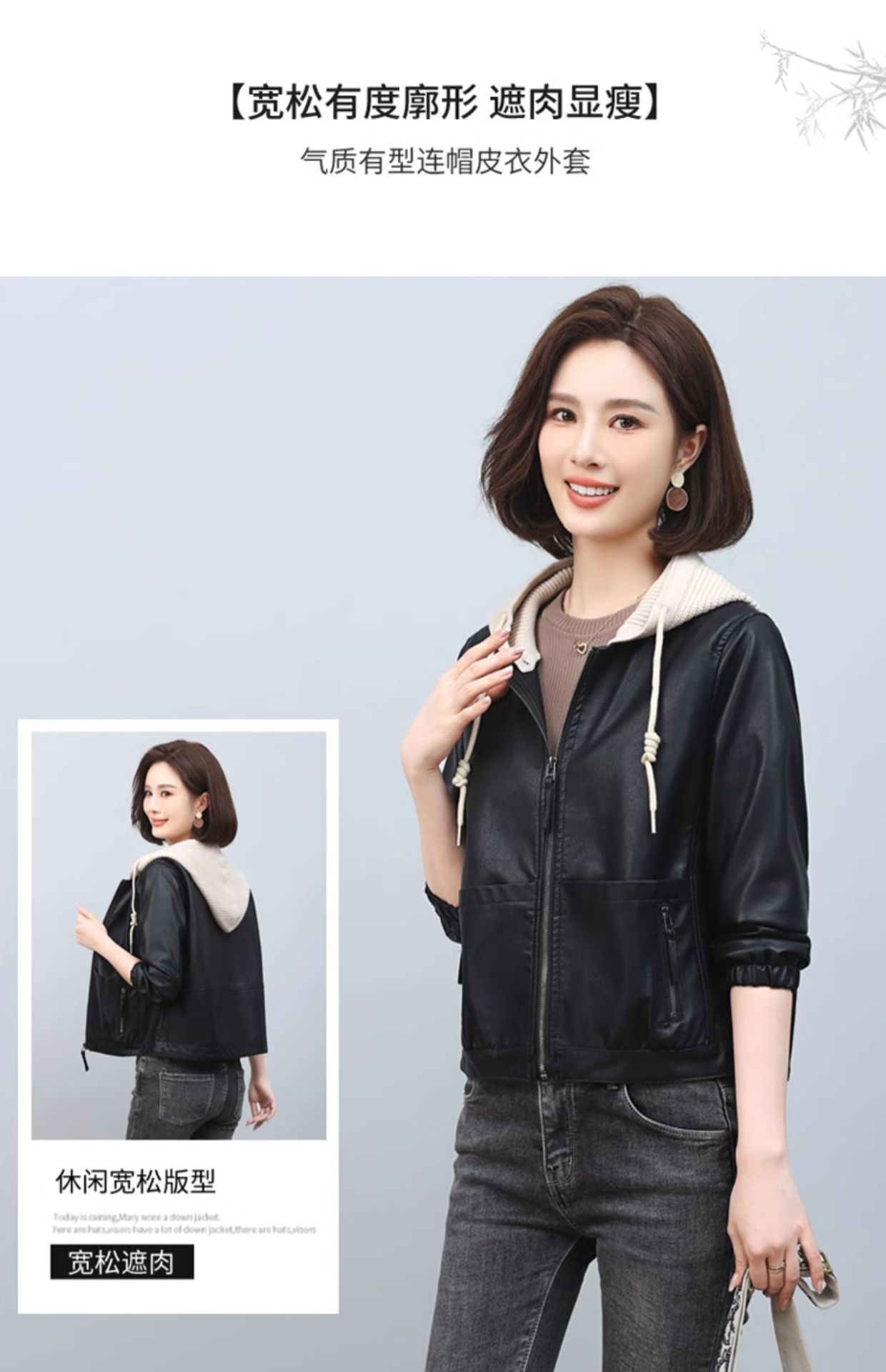 2025 가죽 여성 재킷 인터넷 인기 숏 스타일 슬림하고 패셔너블하며 다재다능한 캐주얼 후드 여성 가죽 재킷