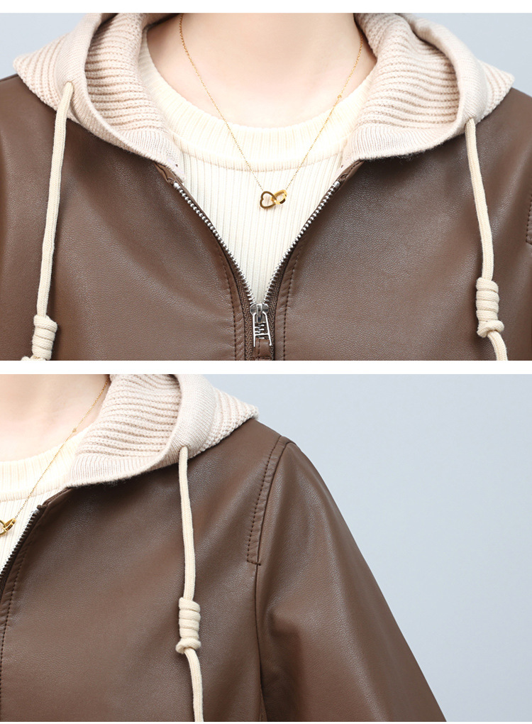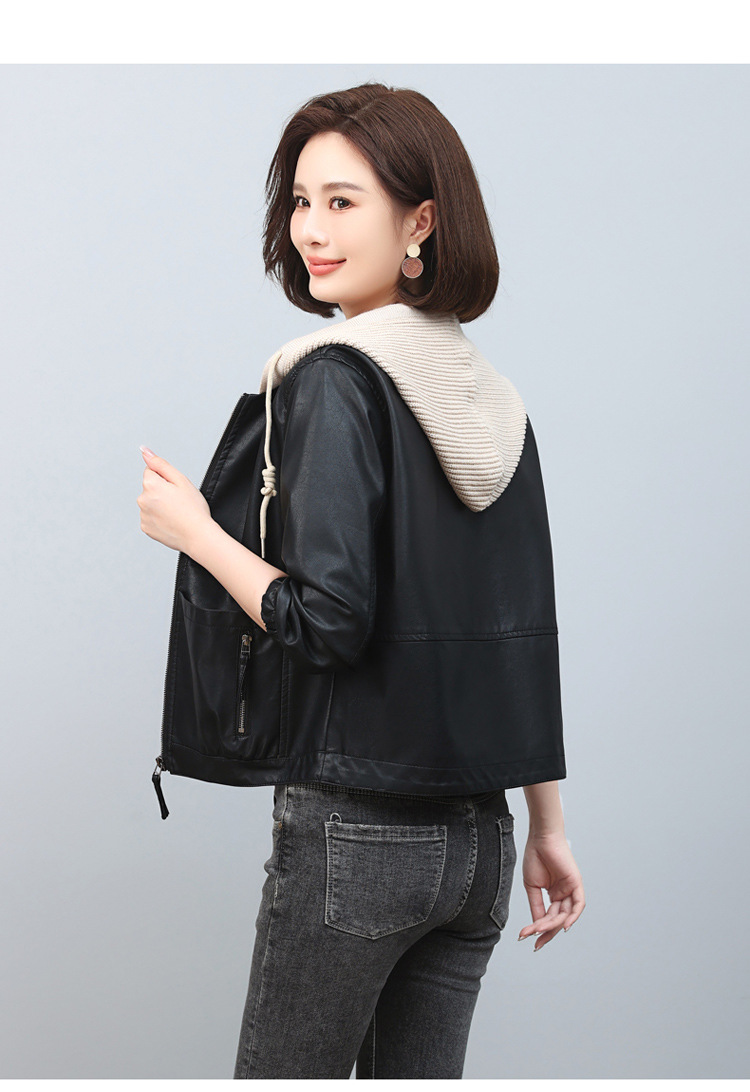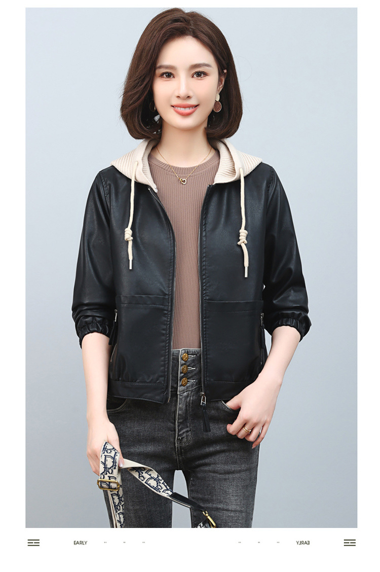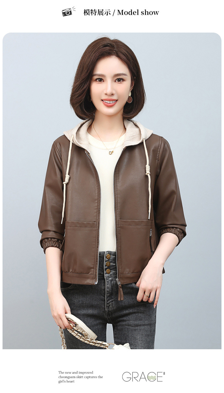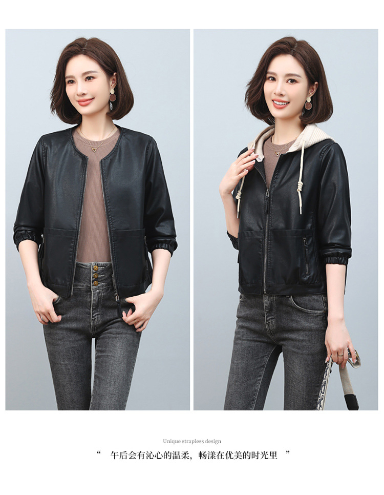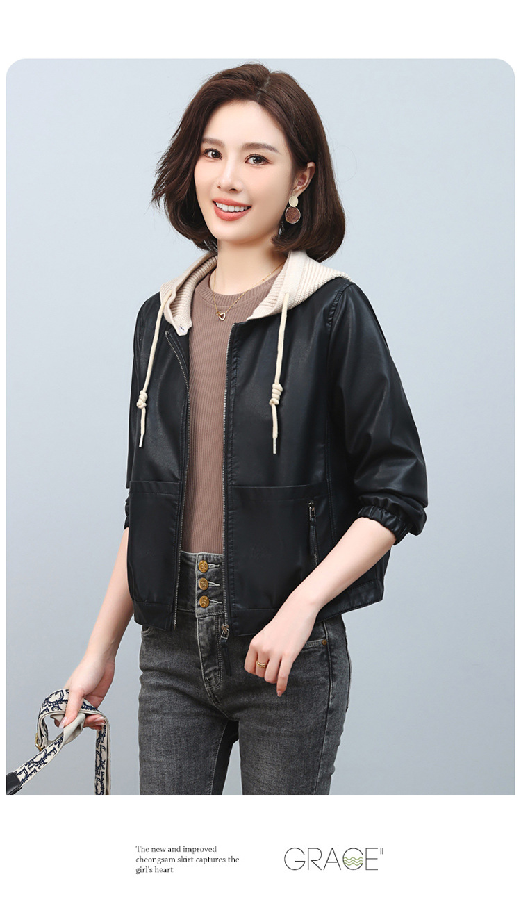 2025 가죽 여성 재킷 인터넷 인기 숏 스타일 슬림하고 패셔너블하며 다재다능한 캐주얼 후드 여성 가죽 재킷