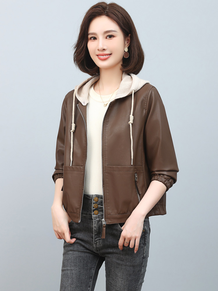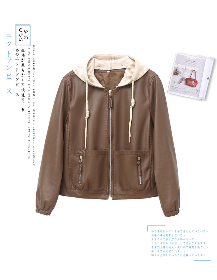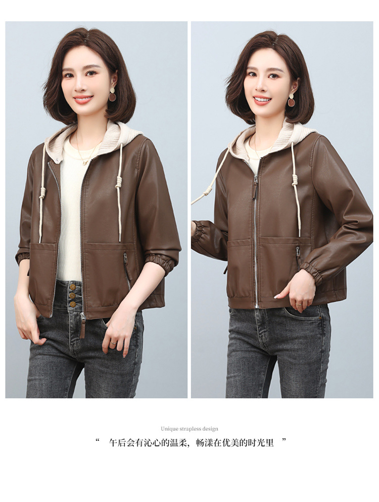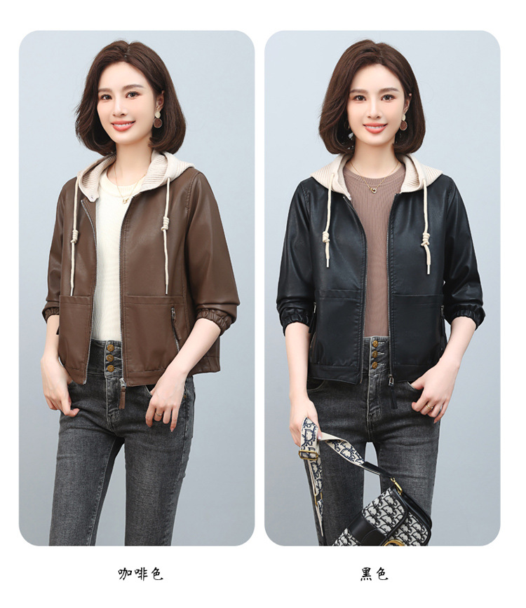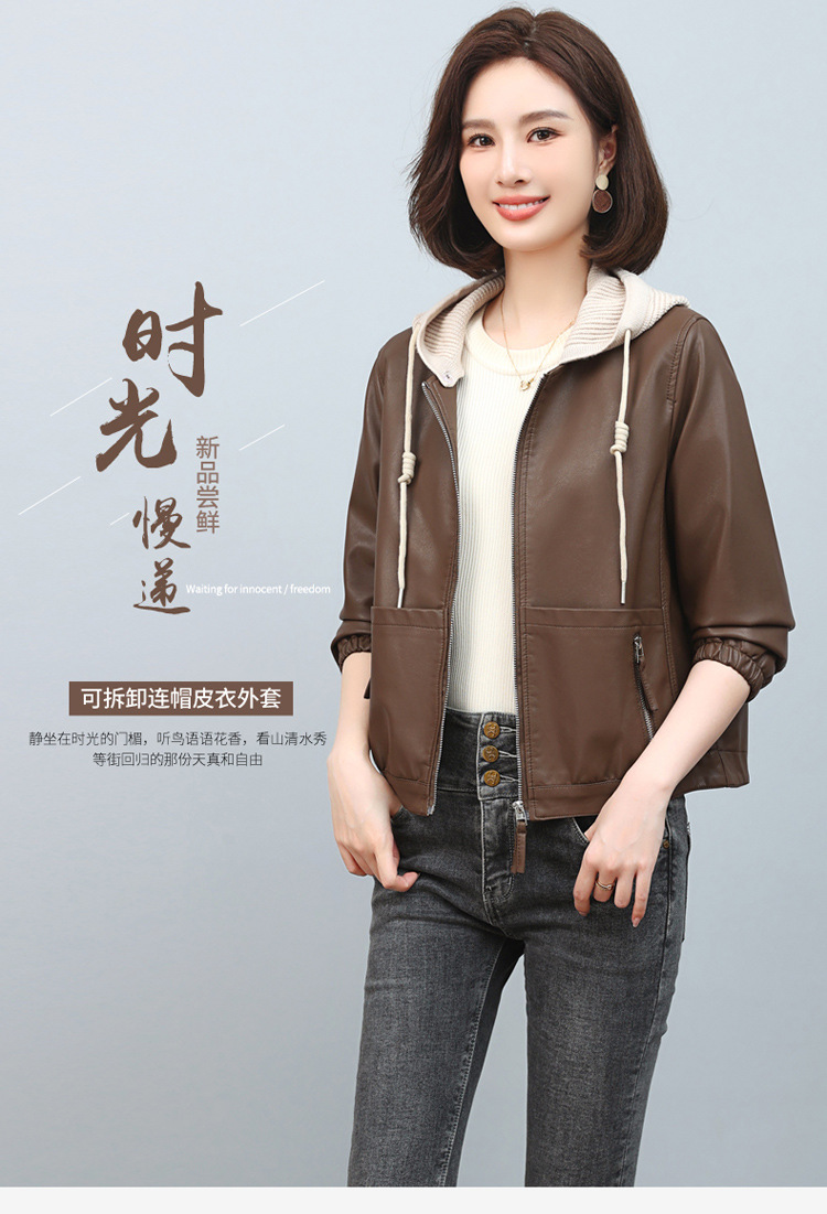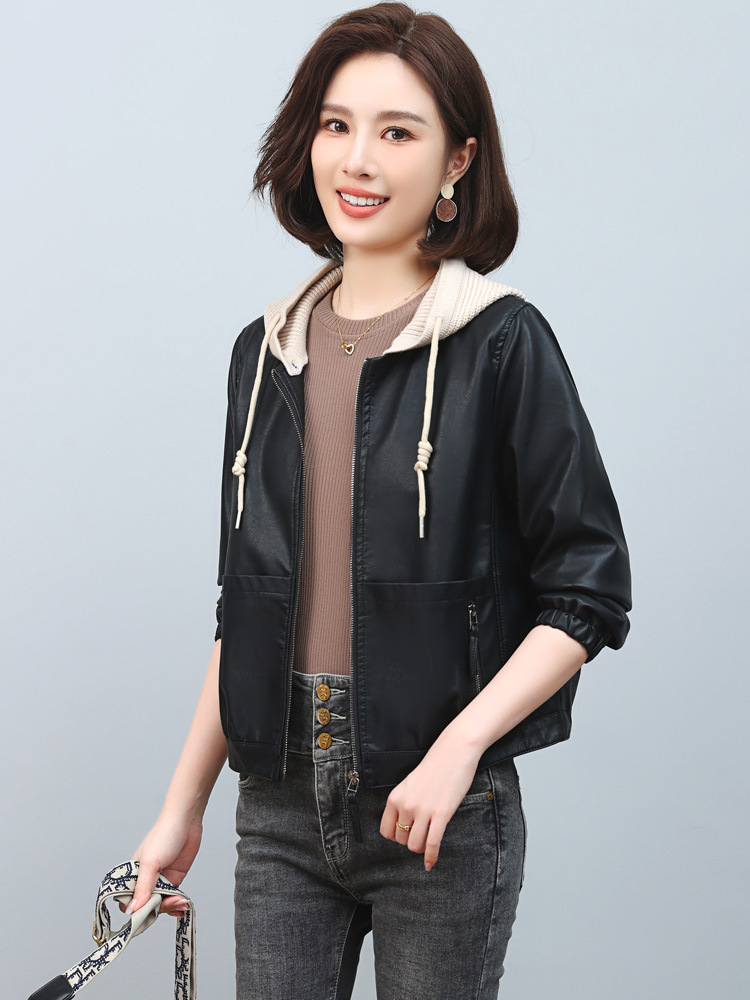 2025 가죽 여성 재킷 인터넷 인기 숏 스타일 슬림하고 패셔너블하며 다재다능한 캐주얼 후드 여성 가죽 재킷