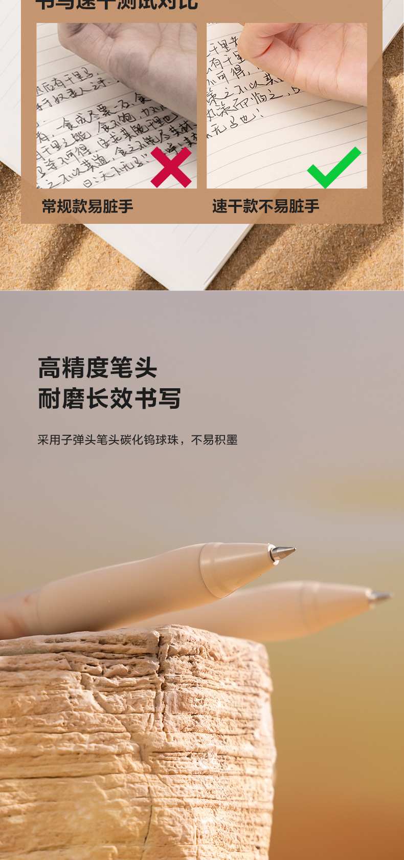 Delinius 빠른 건조 프레스 젤 펜 0.5 총알 천연 유체 학생 검사 브러시 펜 사무실 사용