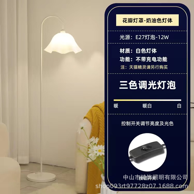 • 크림 꽃잎 플로어 램프 팔꿈치 3 색 디밍