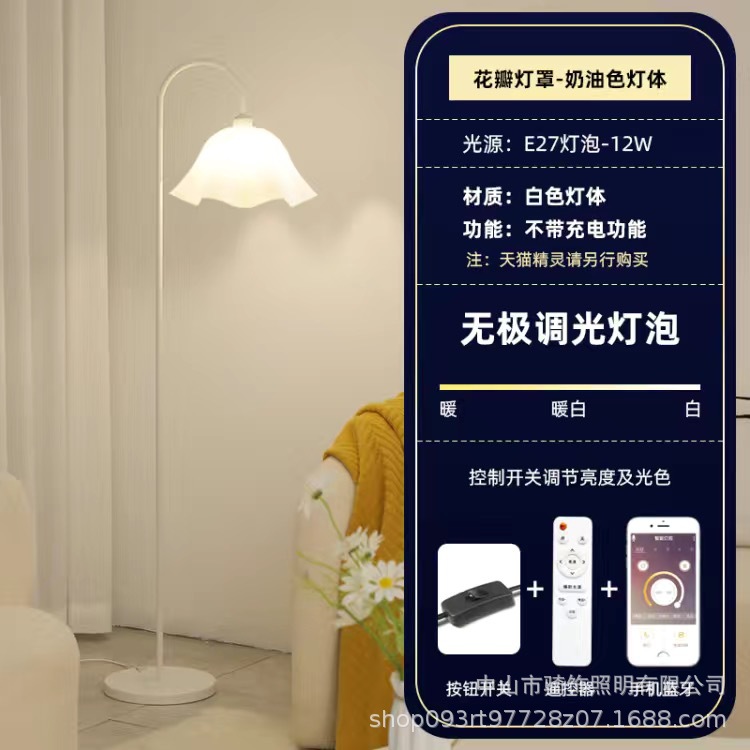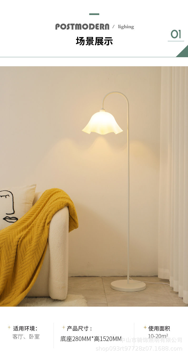 프랑스 크림 스타일 플로어 램프 거실 소파 침실 옆 인터넷 연예인 분위기 램프 스터디 룸 수직 플로어 램프스토어 가기
