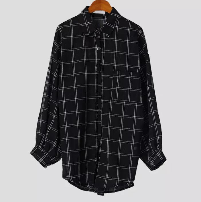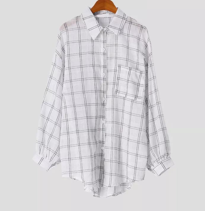 봄과 가을 한국식 격자 무늬 셔츠 느슨한 긴팔 패션 틈새 선스크린 여성 최고 셔츠