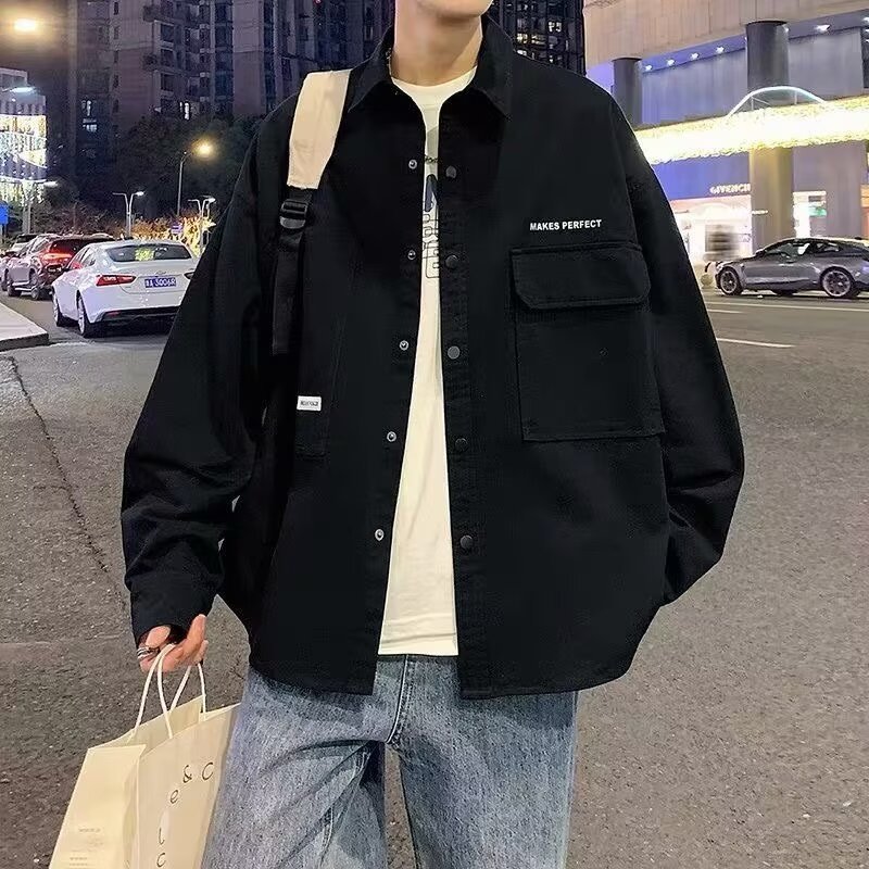 남자 셔츠 자켓 봄 하이 퀄리티 십대 이른 가을 작업 카디건 자켓 일본 캐주얼 얇은 가을 착용