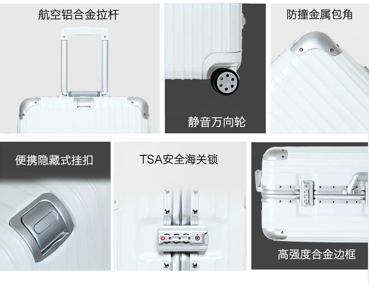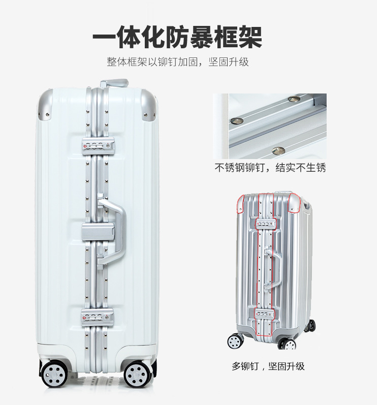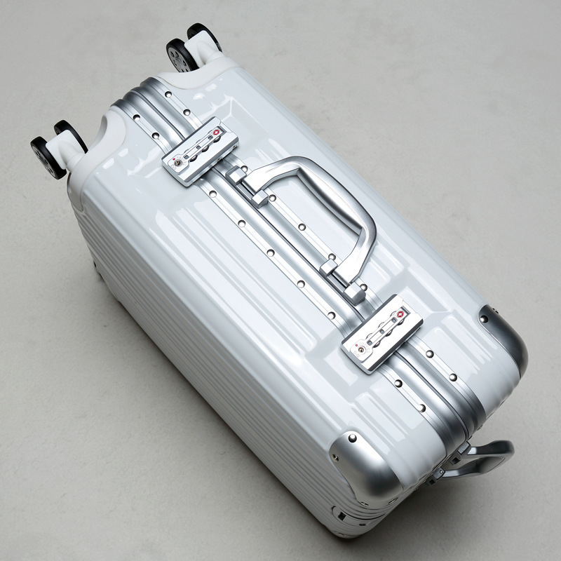 수하물 상자 여성의 24 인치 알루미늄 프레임 트롤리 케이스 유니버설 휠 가방 남성 암호 상자 가죽 케이스 수하물 도매 세대