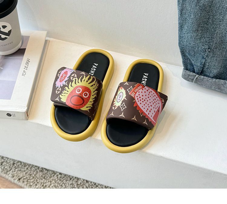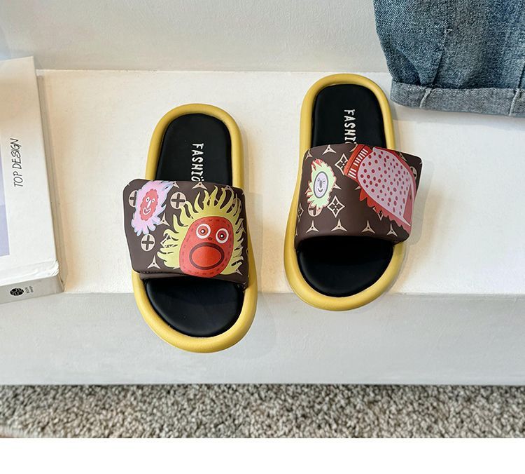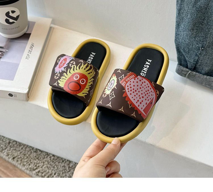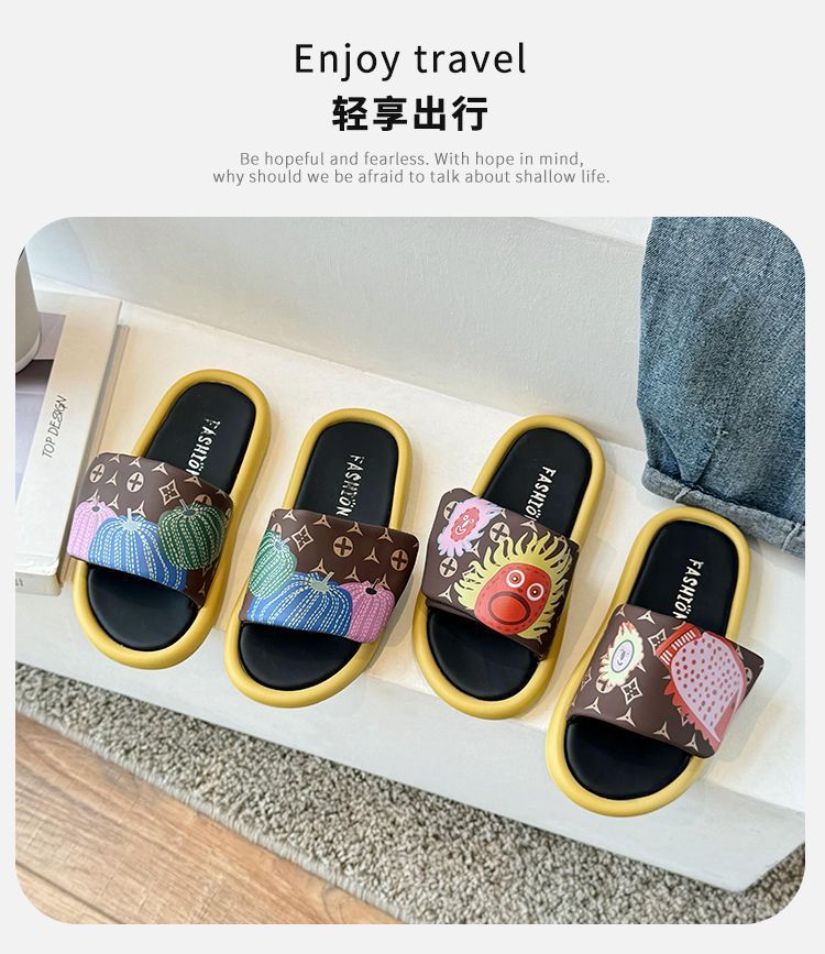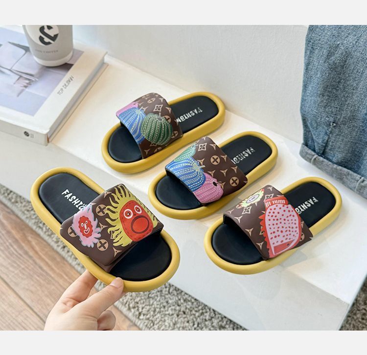 어린이 슬리퍼 2024 그래피티 캐주얼 호박 태양 샌들 슬리퍼 소녀용 슬리퍼 중소 어린이용스토어 가기