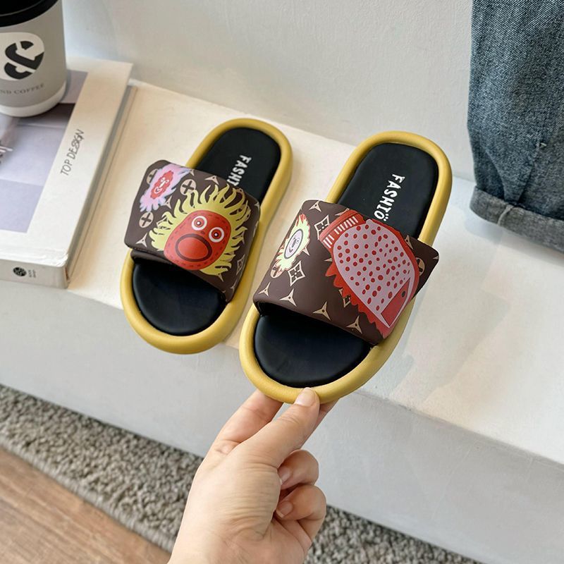 어린이 슬리퍼 2024 그래피티 캐주얼 호박 태양 샌들 슬리퍼 소녀용 슬리퍼 중소 어린이용
