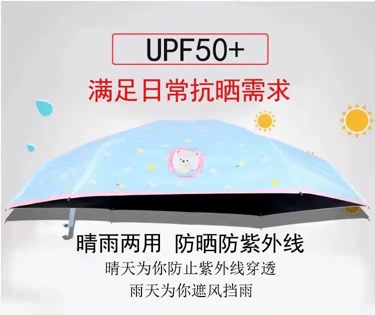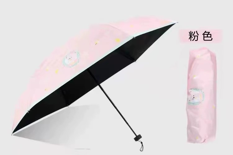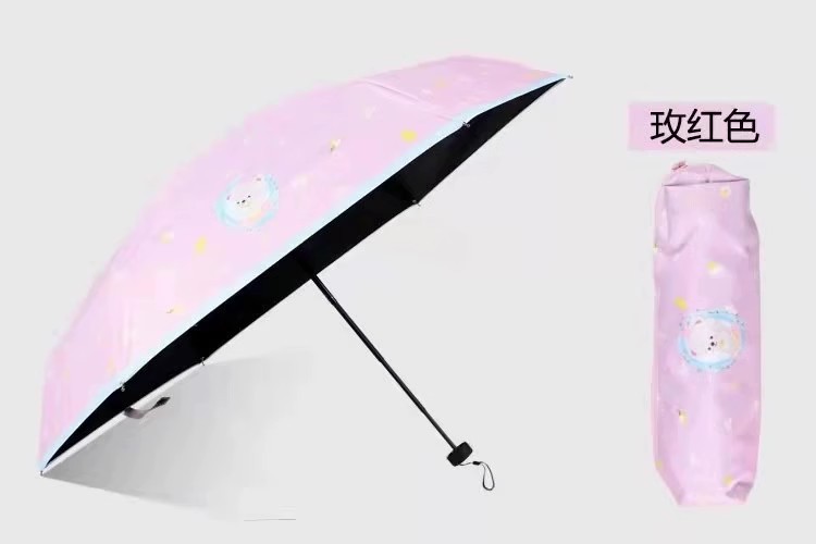 천국 50% 접힌 53046 만화 우산, 남성과 여성을위한 초소형 울트라 라이트 블랙 접착제 UV 보호 선 스크린 우산
