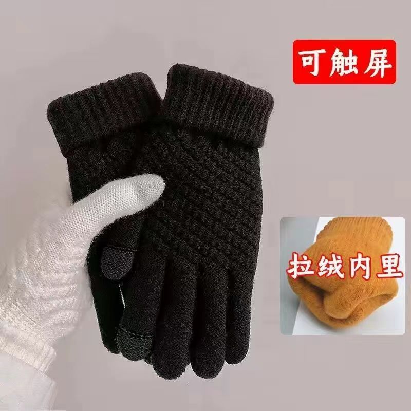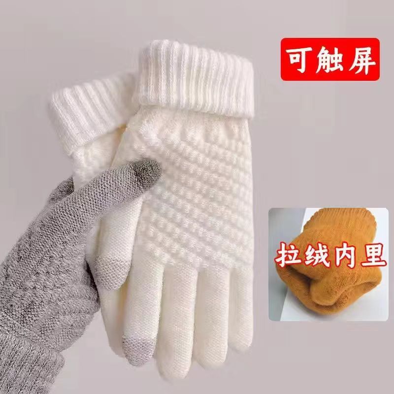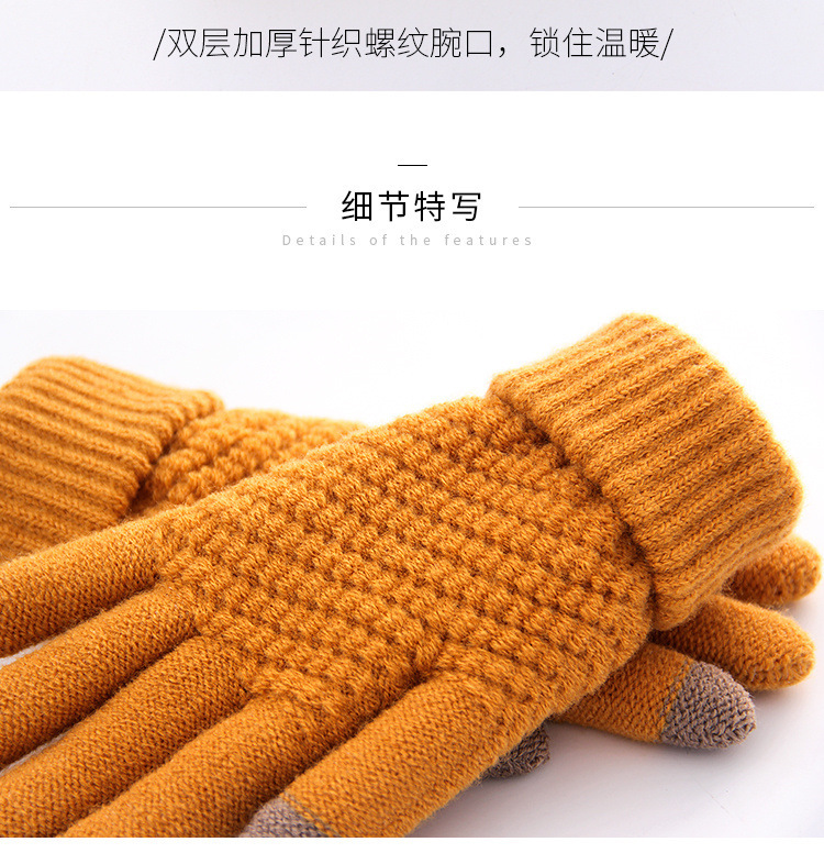 남성과 여성의 가을 및 겨울 라이딩을위한 터치 스크린 장갑 따뜻한 냉장 두꺼운 5 손가락 울 고속 난방 방풍 파인애플 장갑