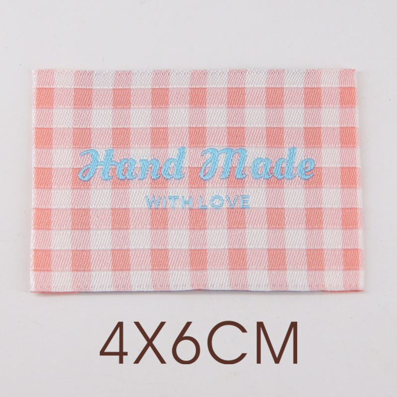 재고 수제 천 라벨 격자 무늬 웨이브 도트 고밀도 원사 더블 브로케이드 라벨 자수 짠 라벨 액세서리 재봉 색상스토어 가기