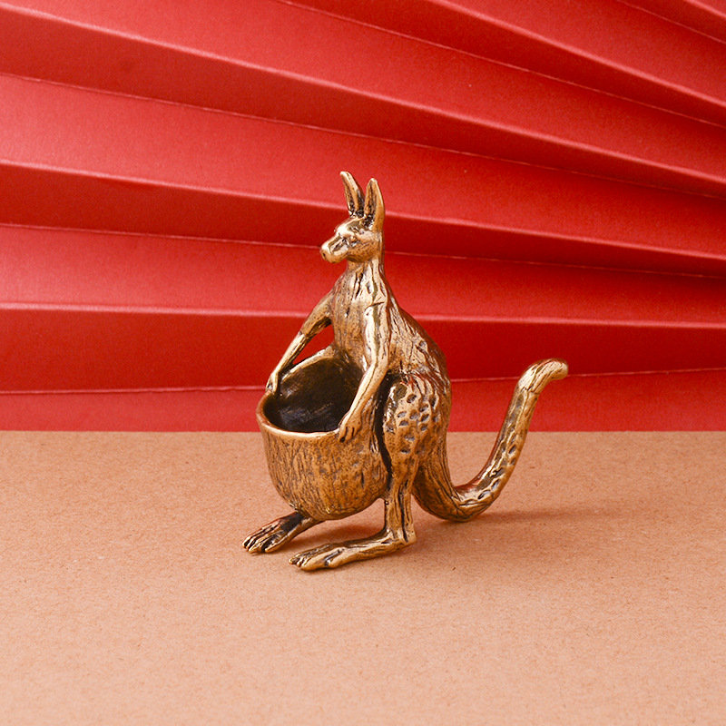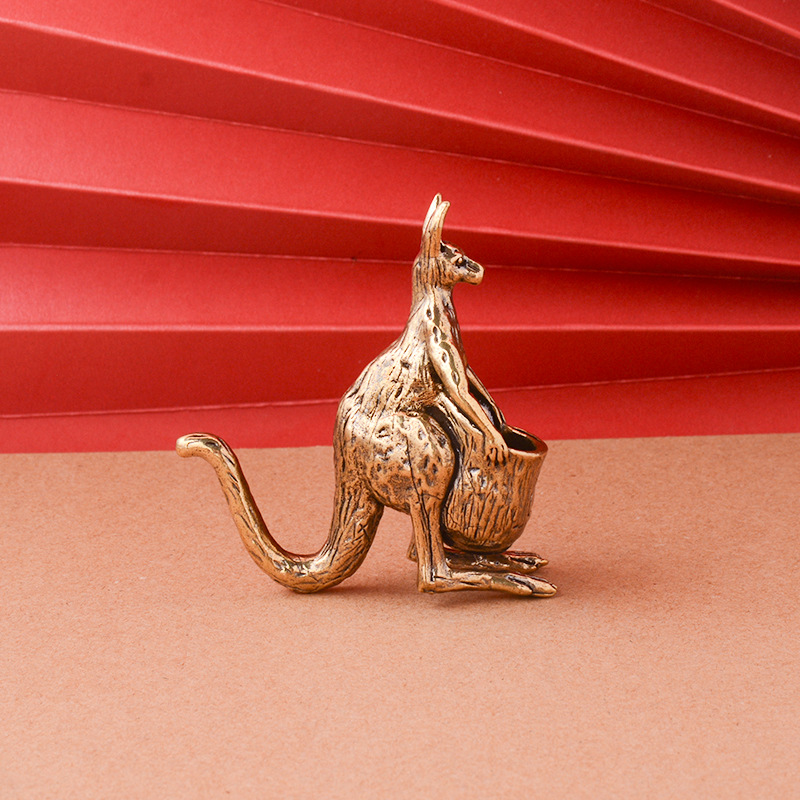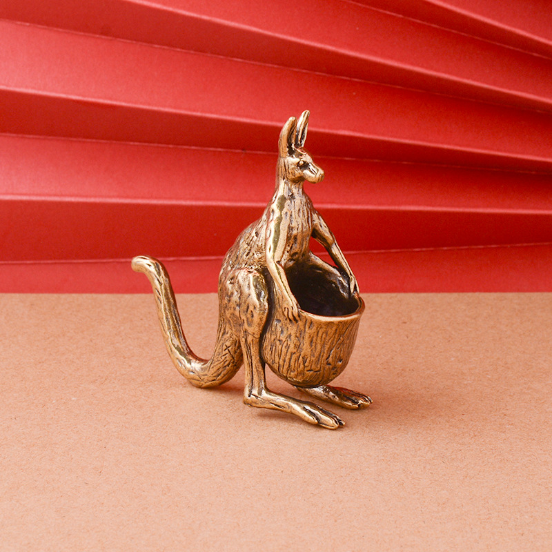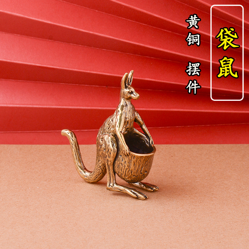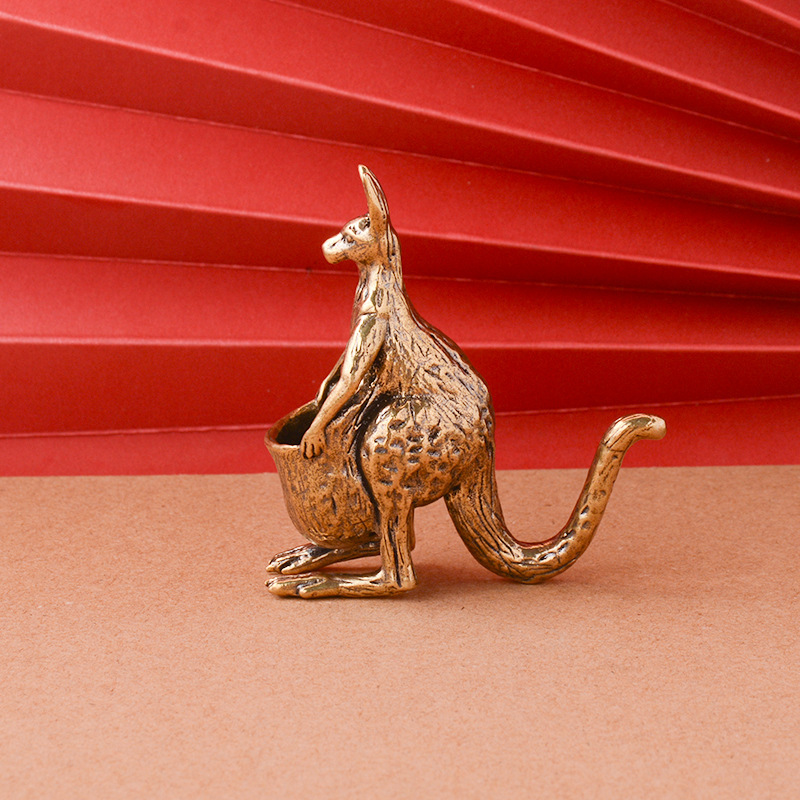 순수한 황동 캥거루 데스크탑 작은 장식품 골동품 집 차 애완 동물 캥거루 장식 작은 청동 공예 장식품 도매