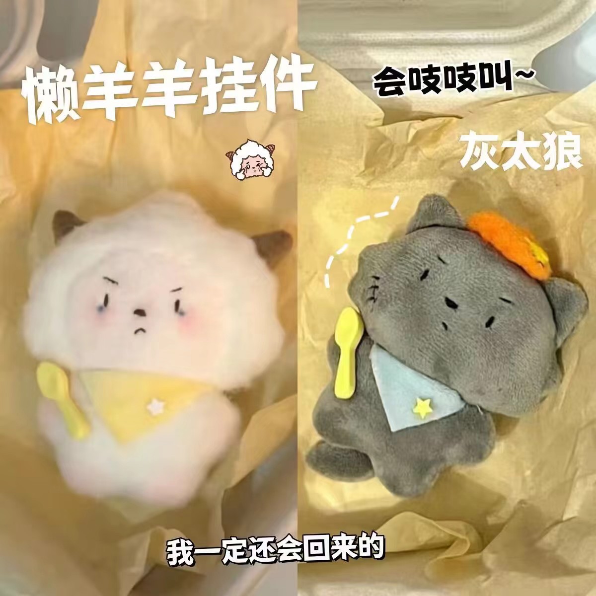 귀여운 만화 회색 늑대 게으른 양 양모 인형 삐걱 거리는 키 체인 가방 인형 펜던트 선물스토어 가기