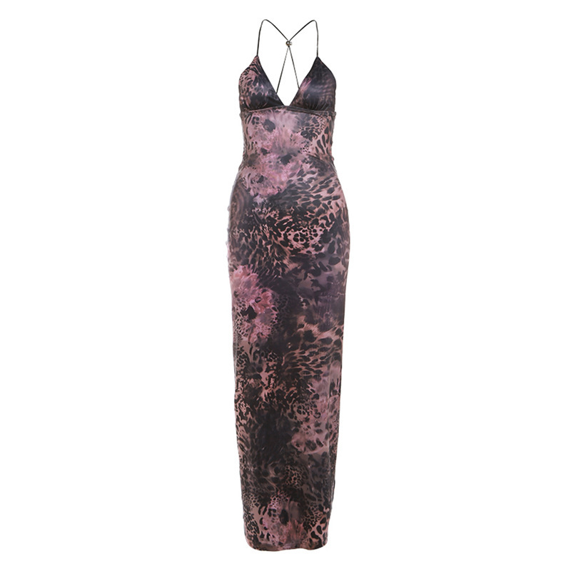 유럽과 미국의 국경 2024 여름 패션 트렌드 여성의 새로운 교수형 목 백리스 슬림 핏 프린트 힙 원피스스토어 가기