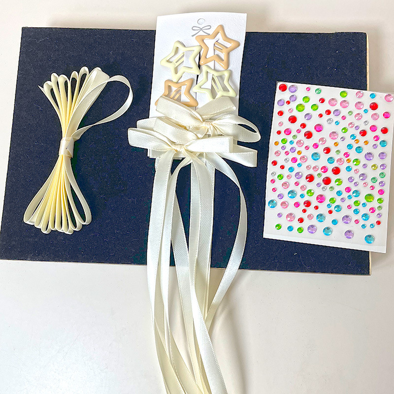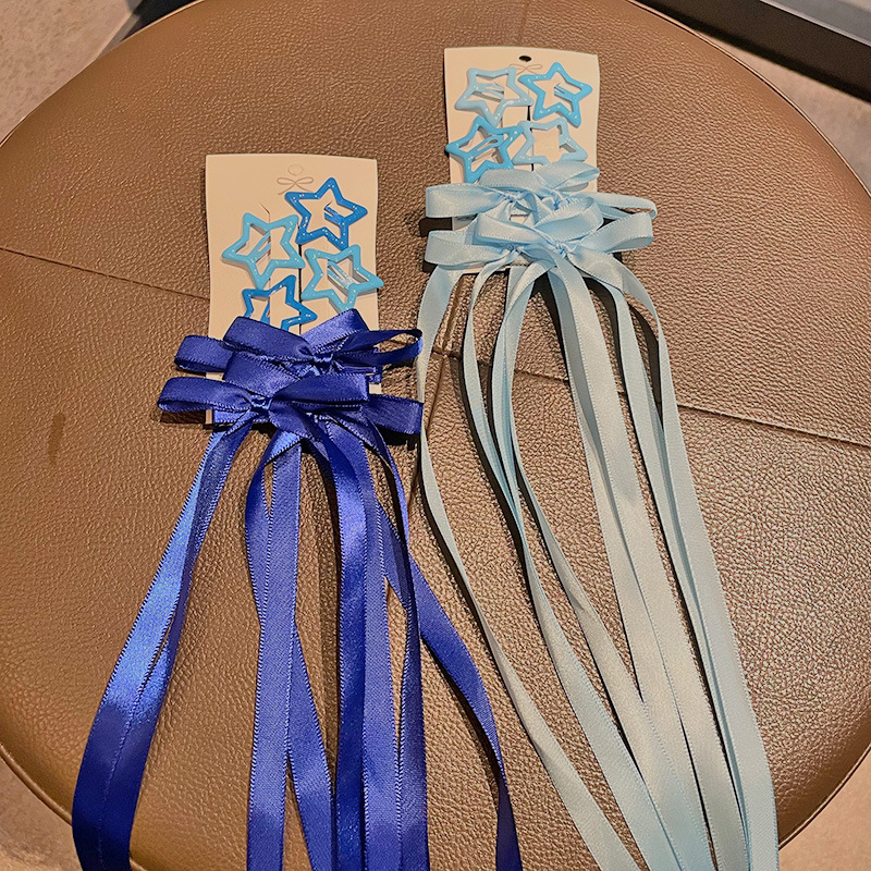 • 파란색 보석 리본 머리핀 단일 판지 세트