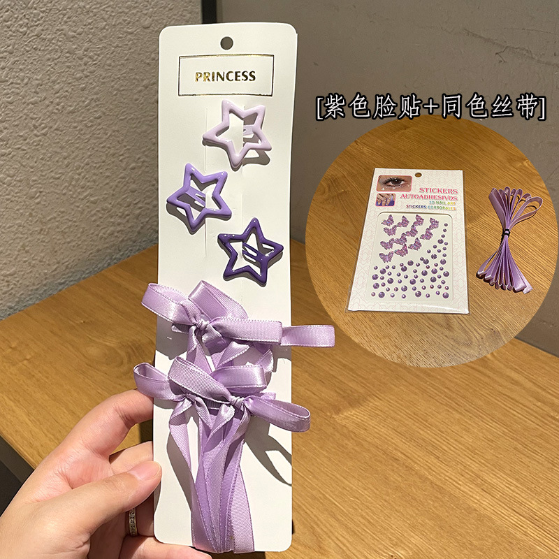 • 연보라색 서포트 세트 업그레이드 버전 (피쉬테일 리본 머리핀 + 페이스 스티커)