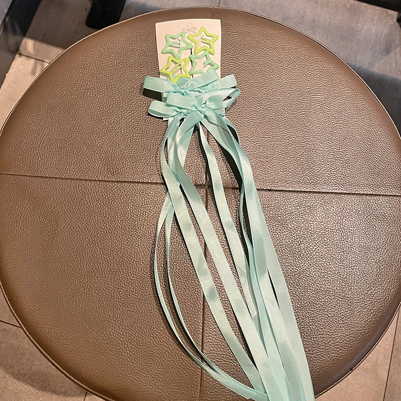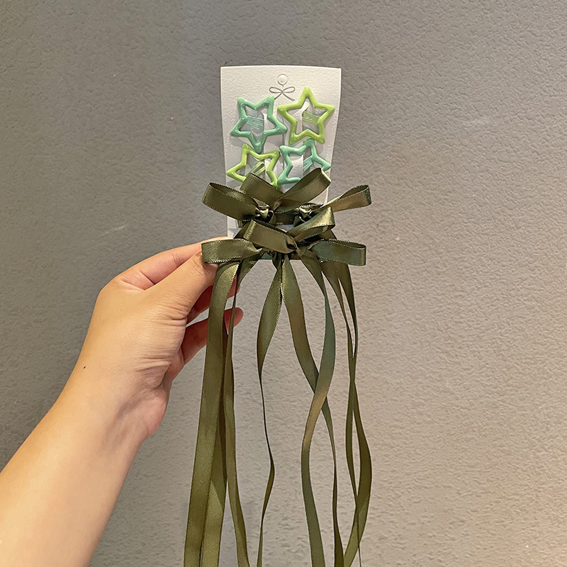 • 흰색과 녹색 리본 머리핀