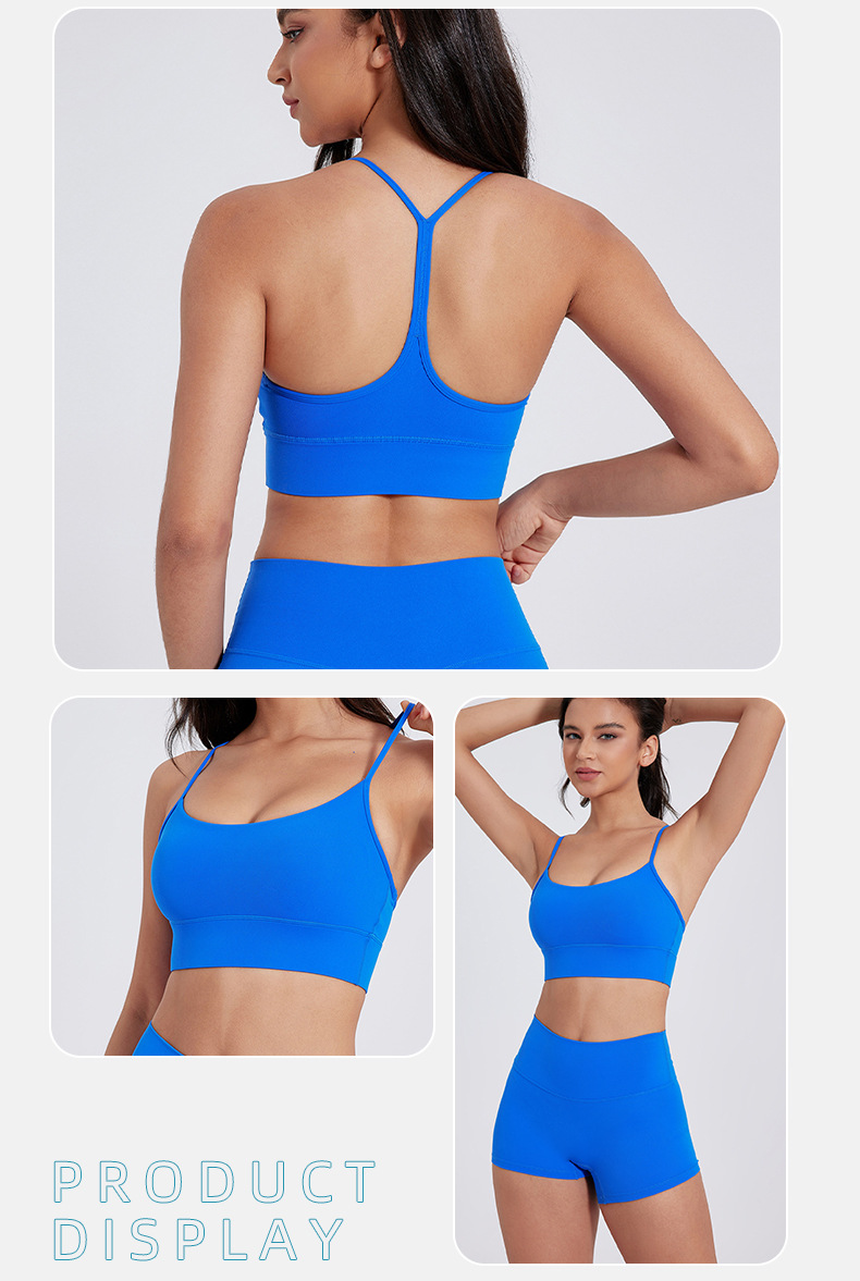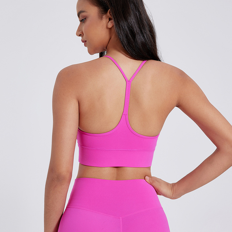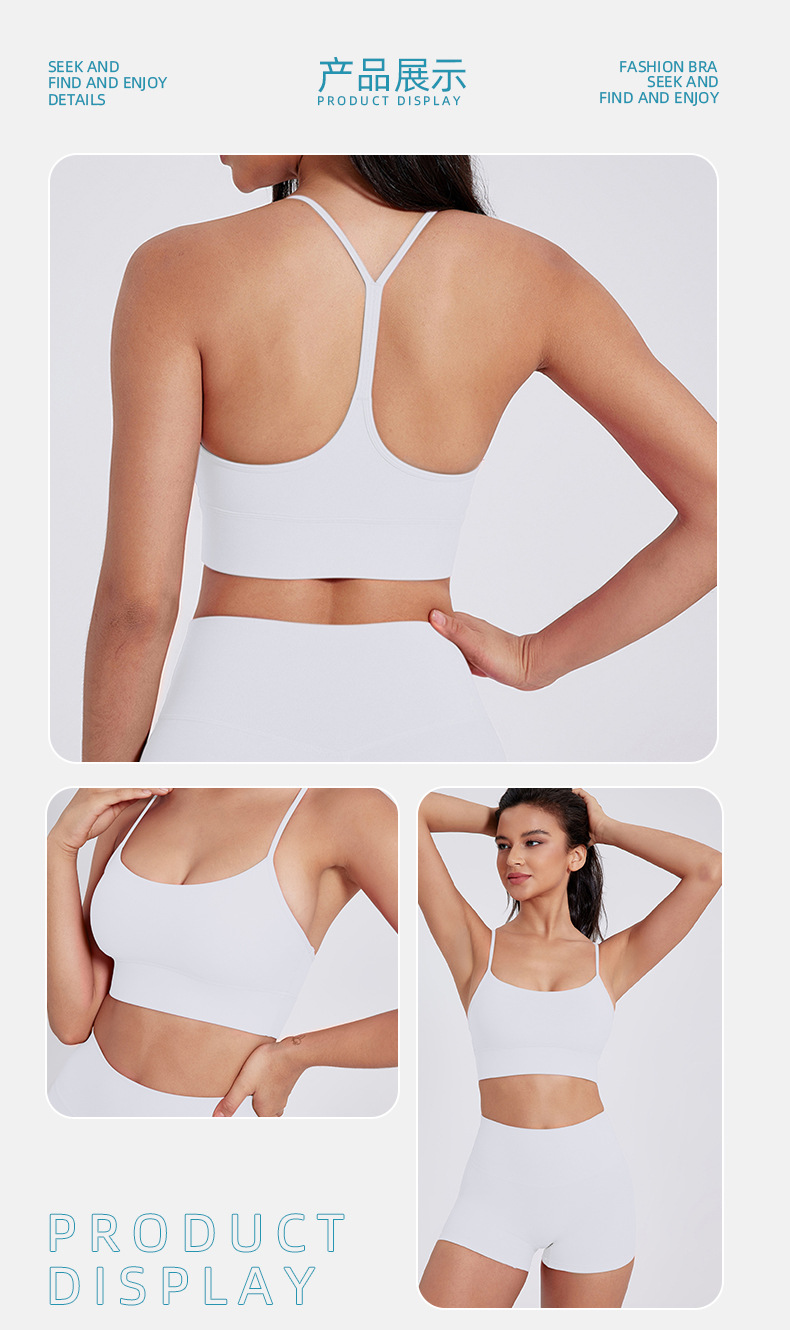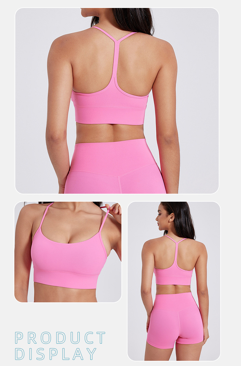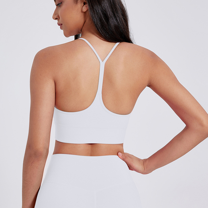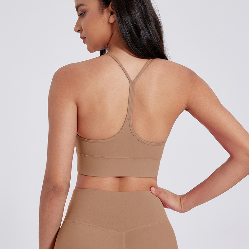 유럽 및 미국 스타일의 누드 느낌 피트니스 대형 요가 브라, 새로운 패션 Y자형 백리스 스포츠 브라 도매스토어 가기