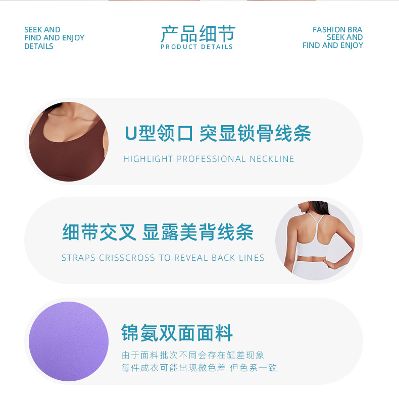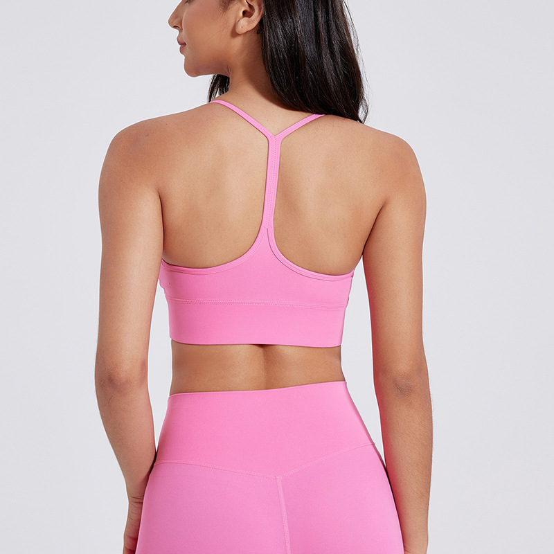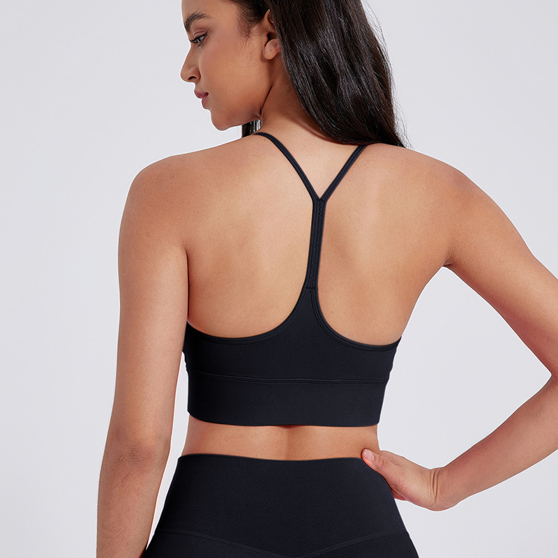 유럽 및 미국 스타일의 누드 느낌 피트니스 대형 요가 브라, 새로운 패션 Y자형 백리스 스포츠 브라 도매