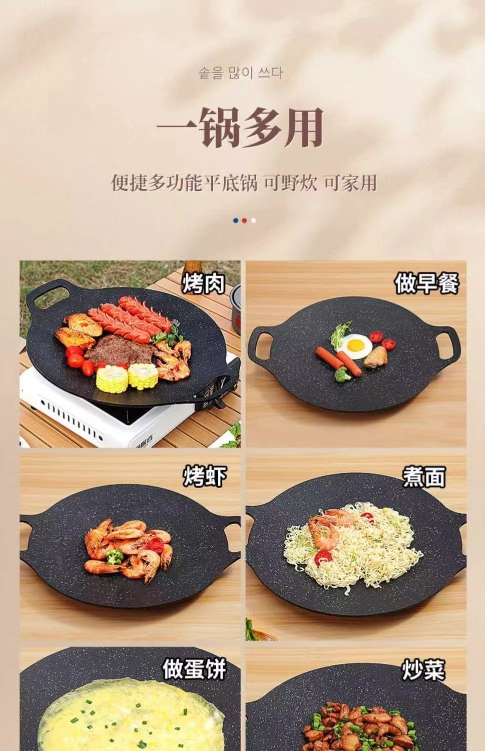 베이커웨어 가정용 유도 밥솥 한국식 바베큐 접시 야외 밥솥 특수 바베큐 플레이트 휴대용 캠핑 철판 프라이팬스토어 가기