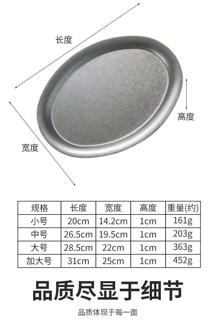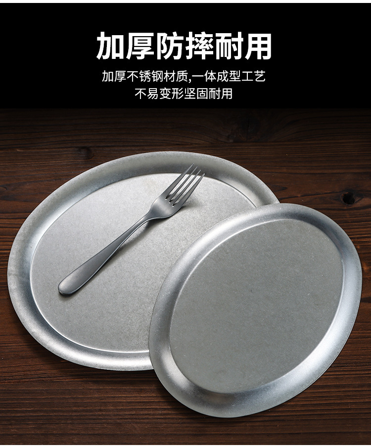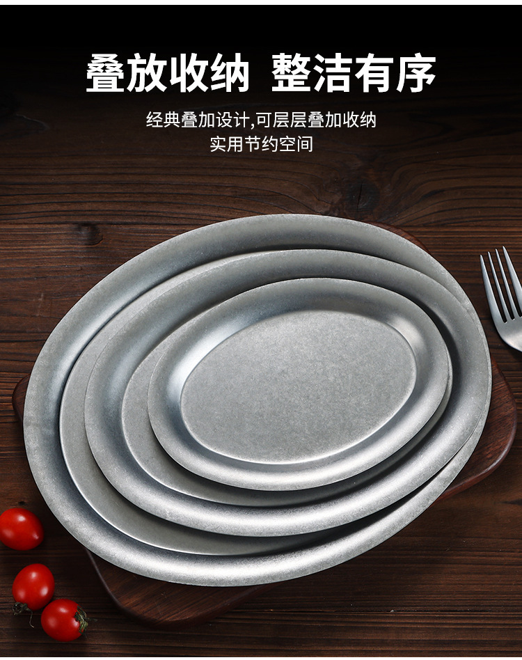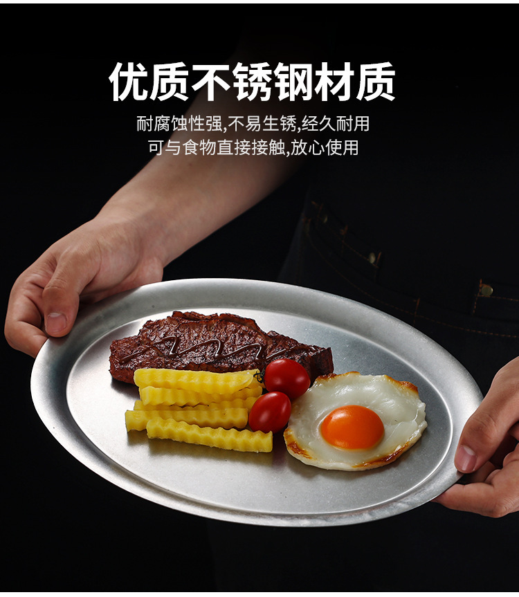 빈티지 304 스테인레스 스틸 타원형 디스크 오래 된 카페 트레이 바베큐 플레이트 뜨거운 냄비 접시 과일 플레이트 타월 플레이트스토어 가기