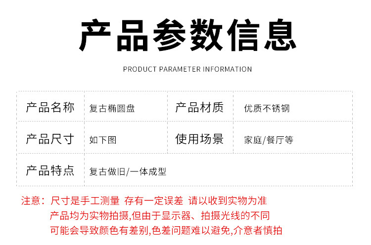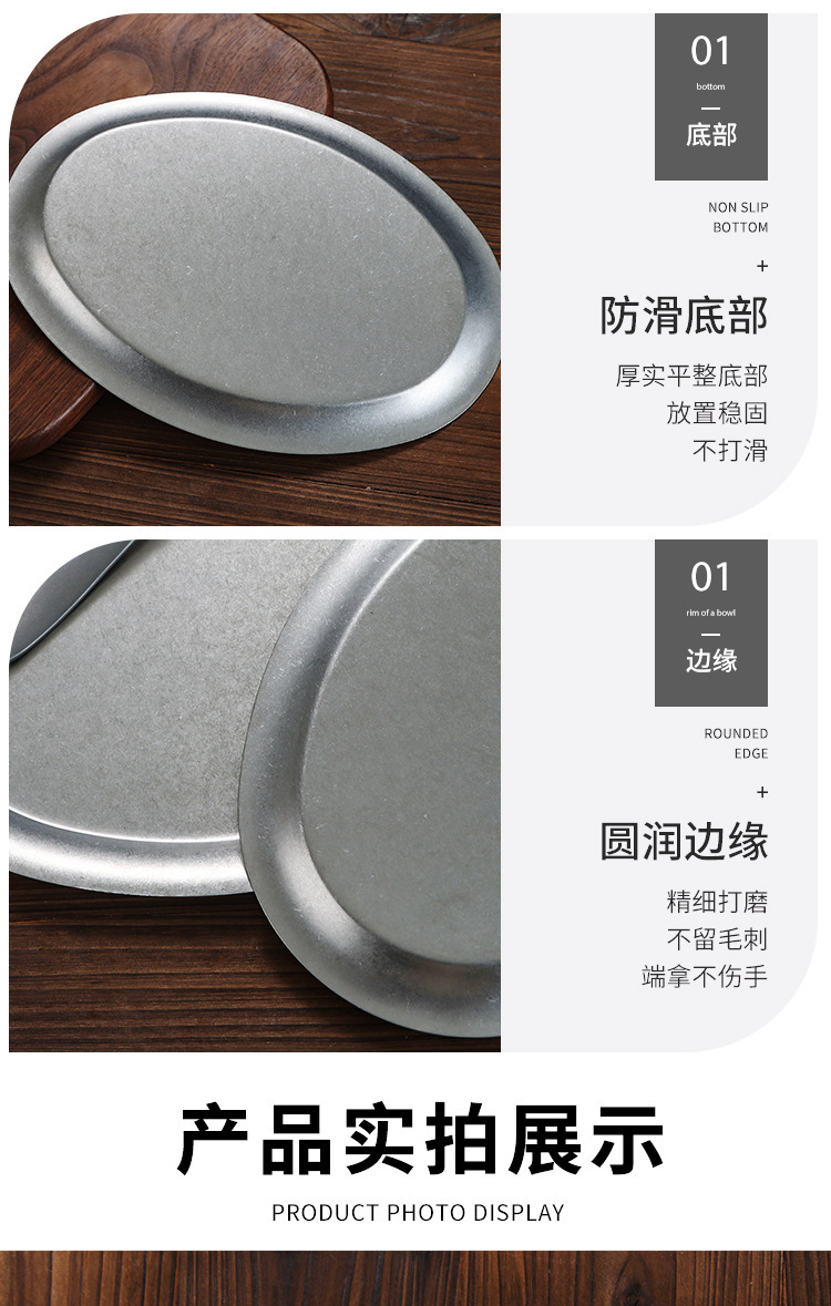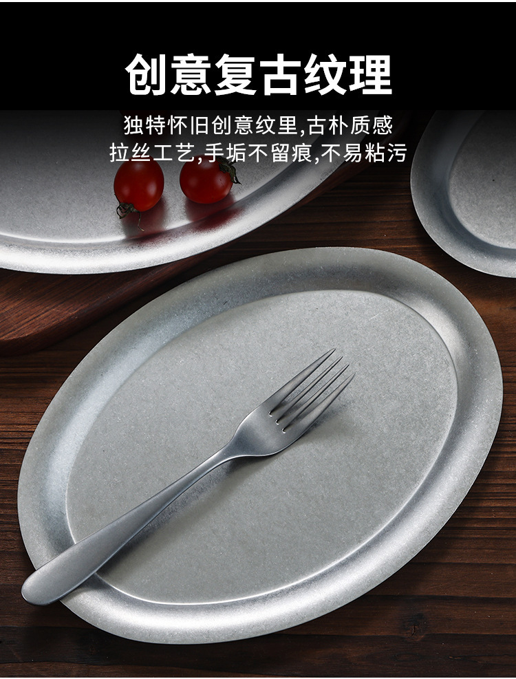 빈티지 304 스테인레스 스틸 타원형 디스크 오래 된 카페 트레이 바베큐 플레이트 뜨거운 냄비 접시 과일 플레이트 타월 플레이트