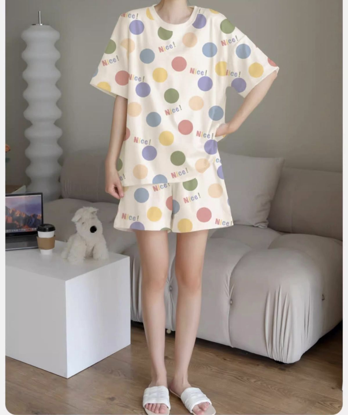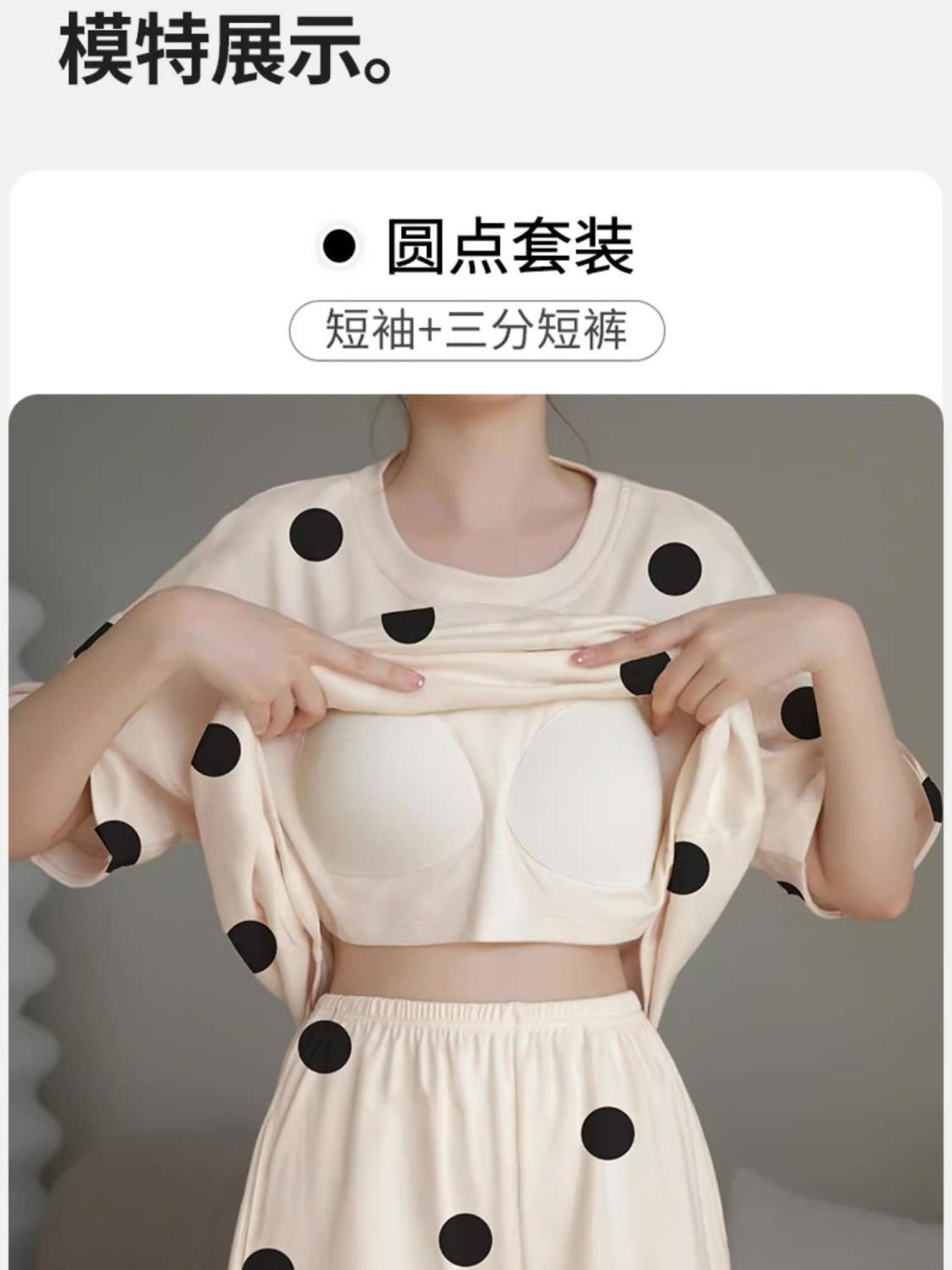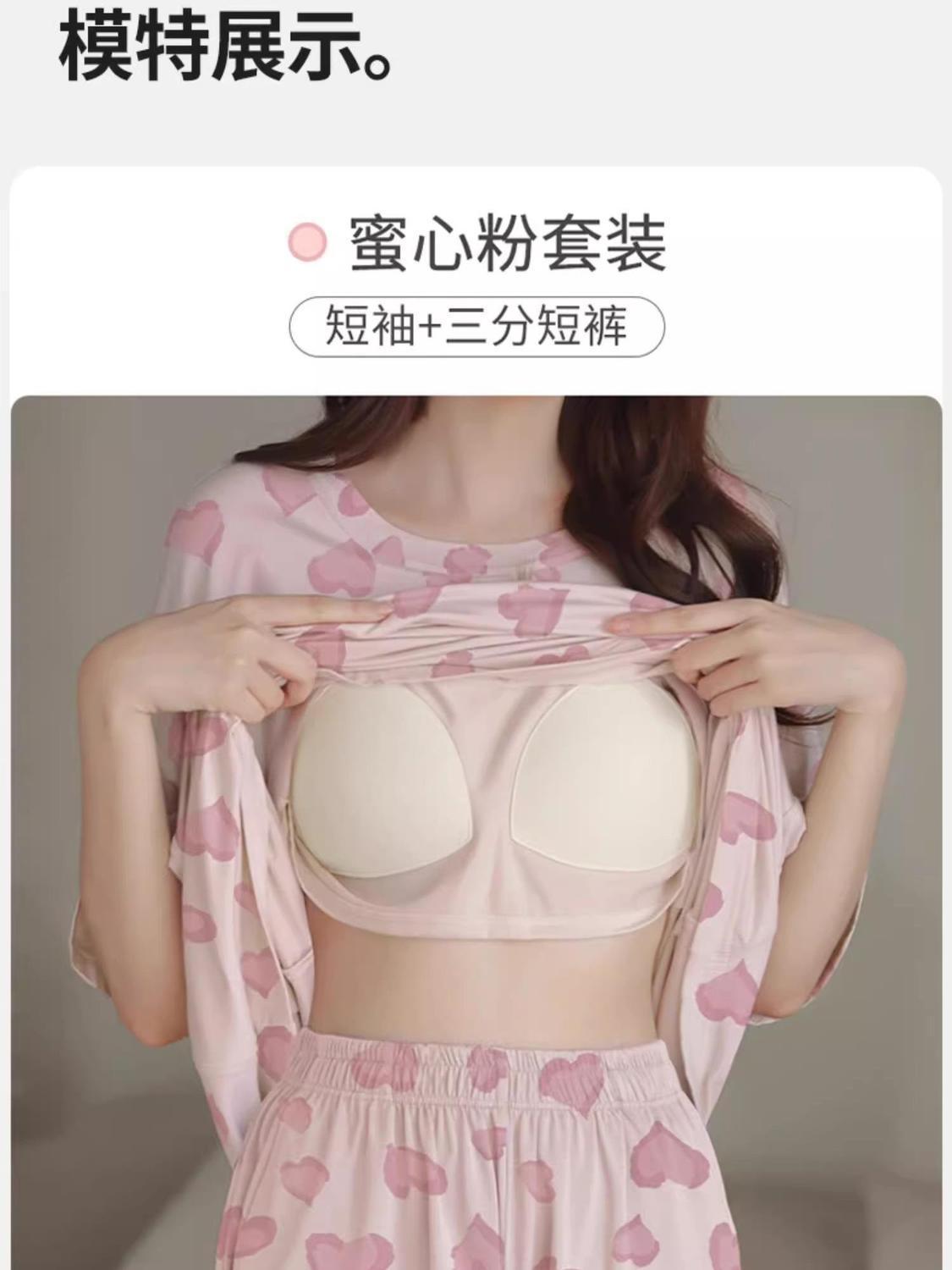 가슴 패드가 달린 원피스 잠옷 여성 여름 반팔 반바지 한국 스타일 만화 귀여운 달콤한 소녀의 캐주얼 홈 옷스토어 가기