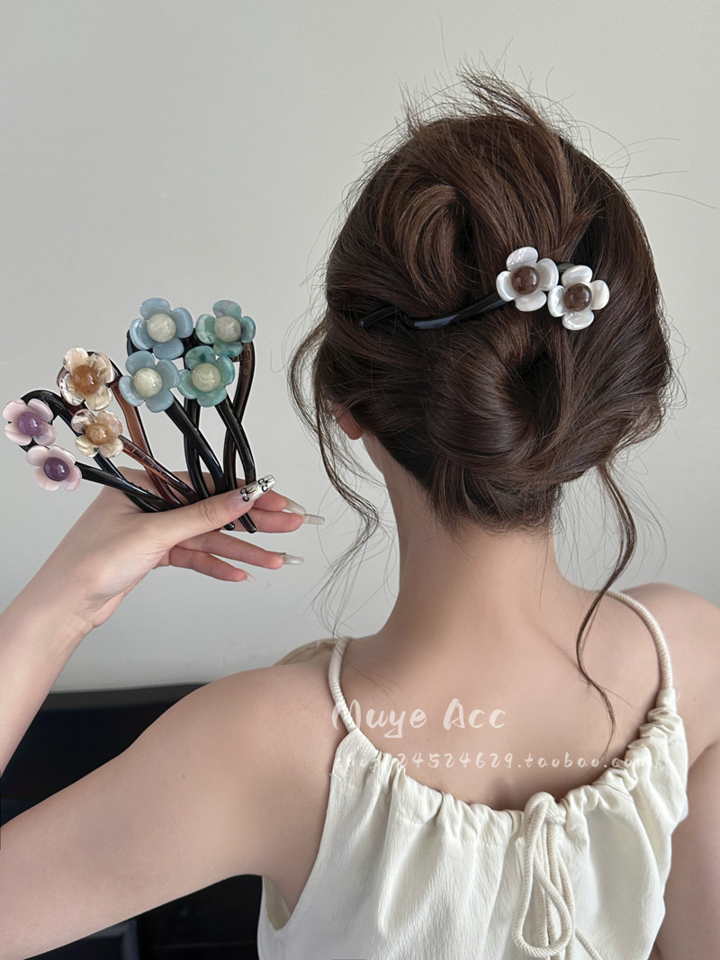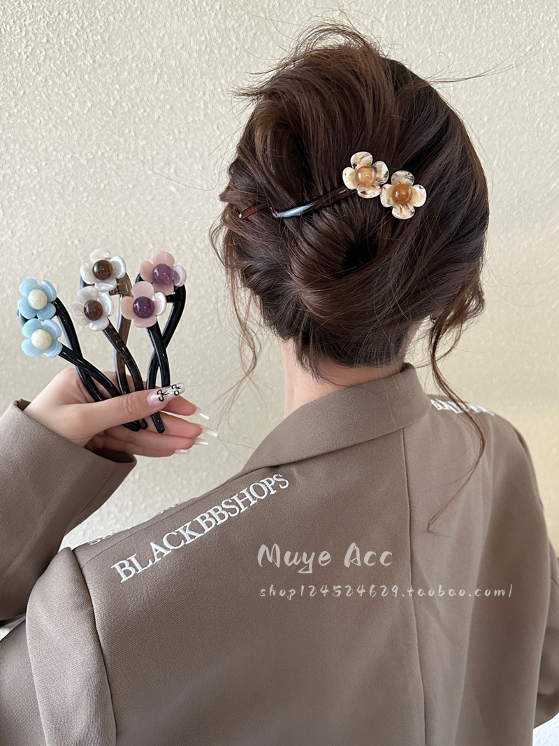 고급 우아한 올 매치 플라워 헤어핀 여성의 2024 머리 머리 머리 머리 잡아 코일 헤어 트위스트 클립 헤드웨어스토어 가기