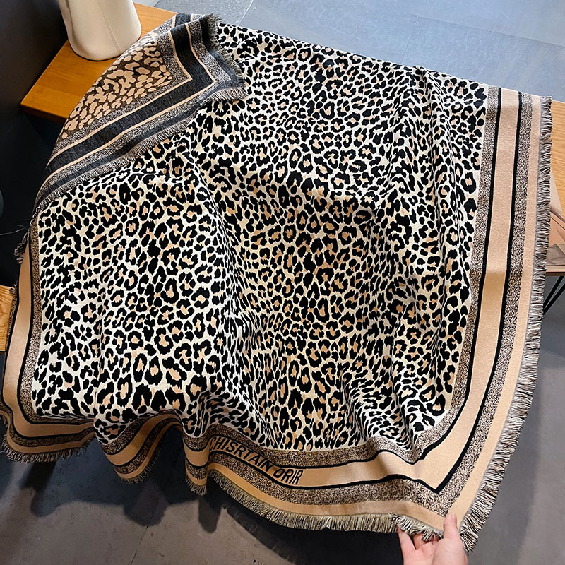 유럽과 미국의 새로운 복고풍 레오파드 무늬 패션 대형 광장 모방 캐시미어 목도리 두꺼운 술 에어컨 담요 냉난방 따뜻한 여성