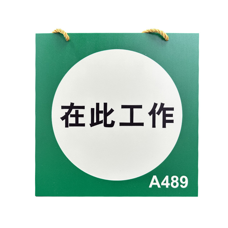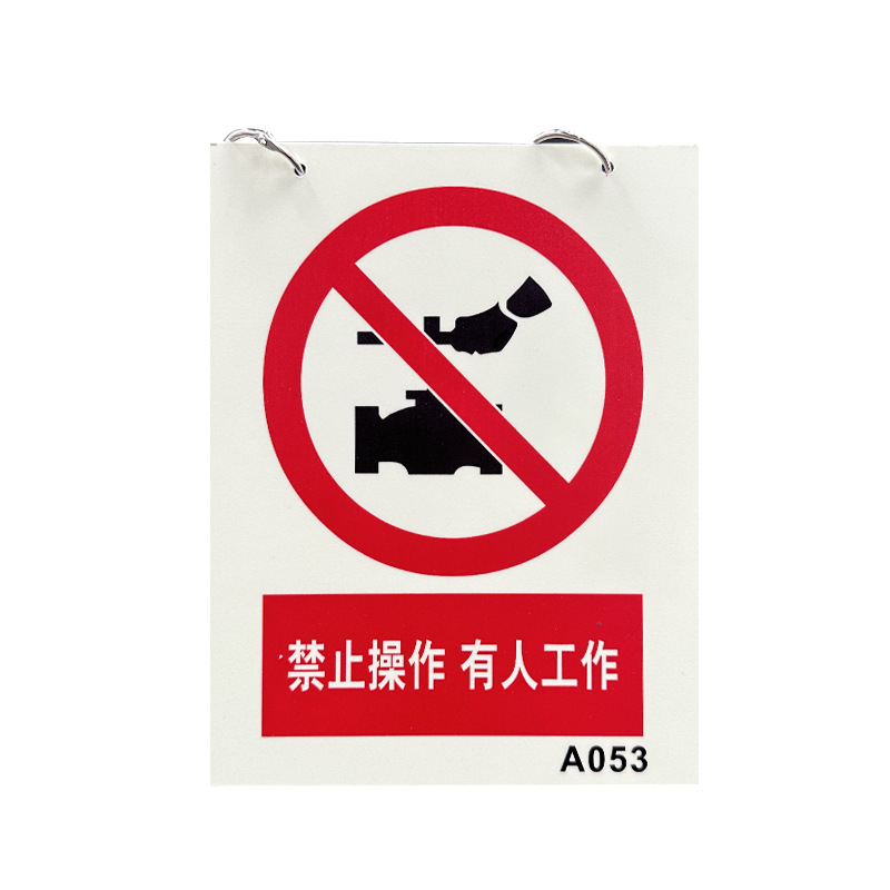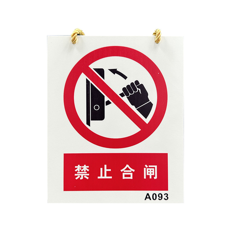 폐쇄를 금지하기 위해 안전 표지판을 걸고. 여기서 일하십시오. 고전압 위험 경고 표시. 빛 저장 난연 절연 pvc