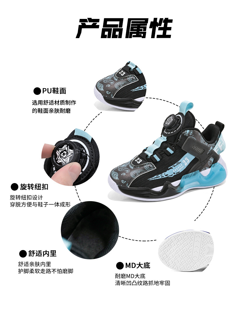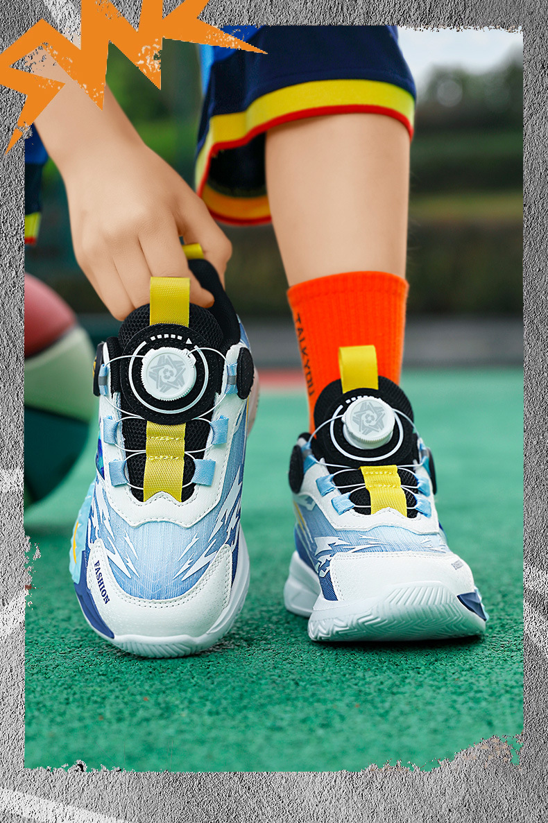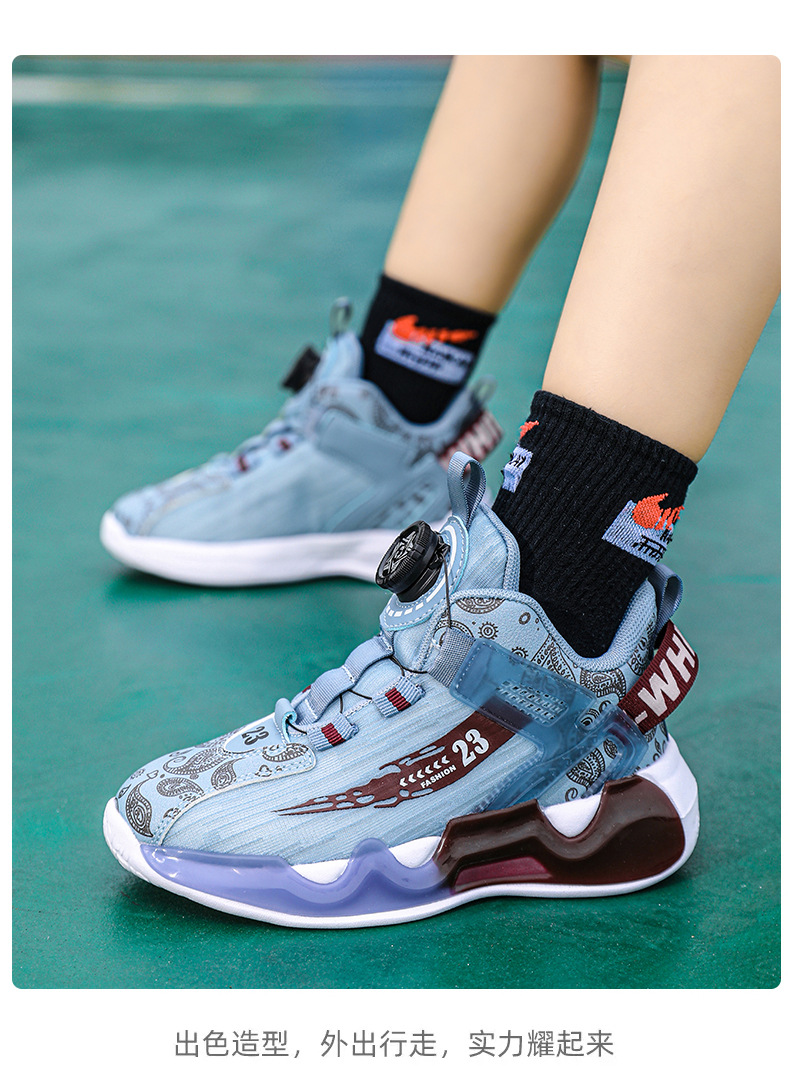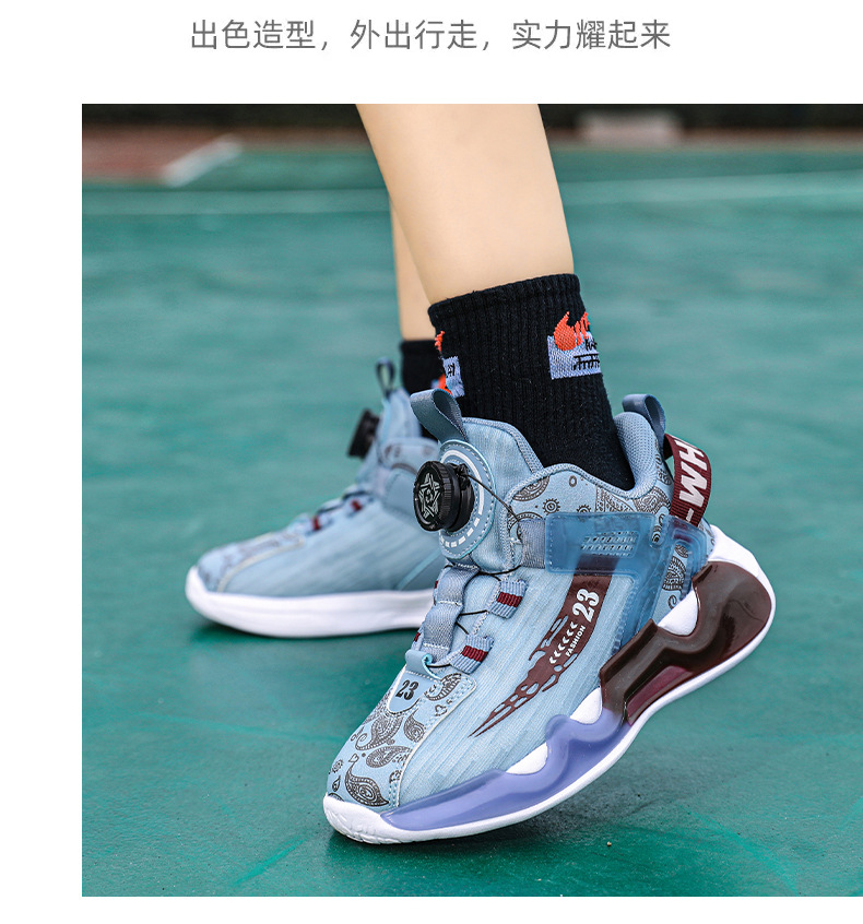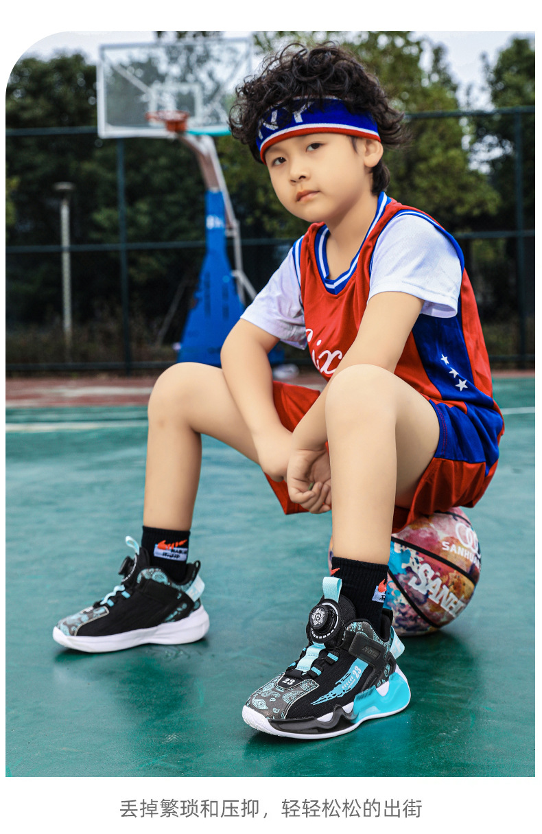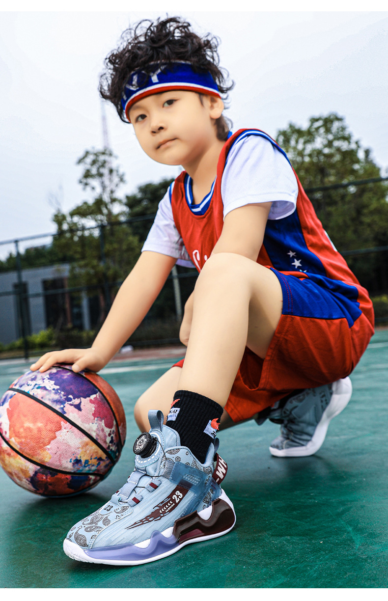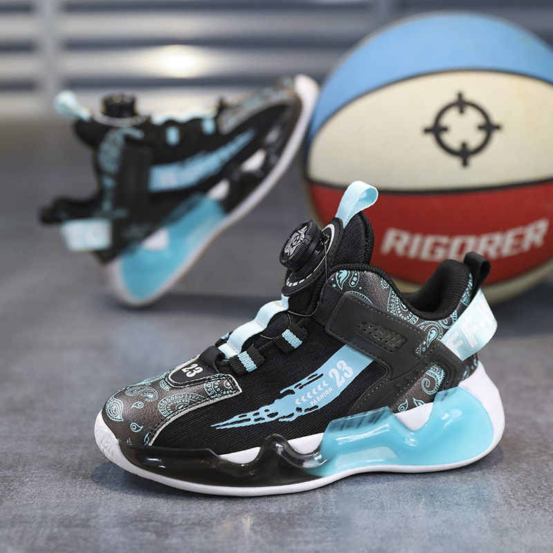 대외 무역 새로운 사계절 어린이 농구 신발 대형 어린이 로타리 버클 통기성 메쉬 미끄럼 방지 마모 방지 실용 운동화