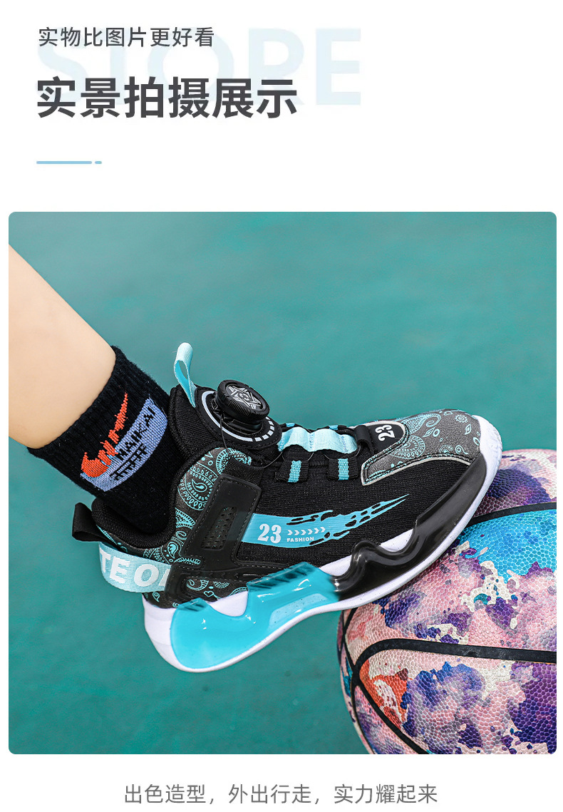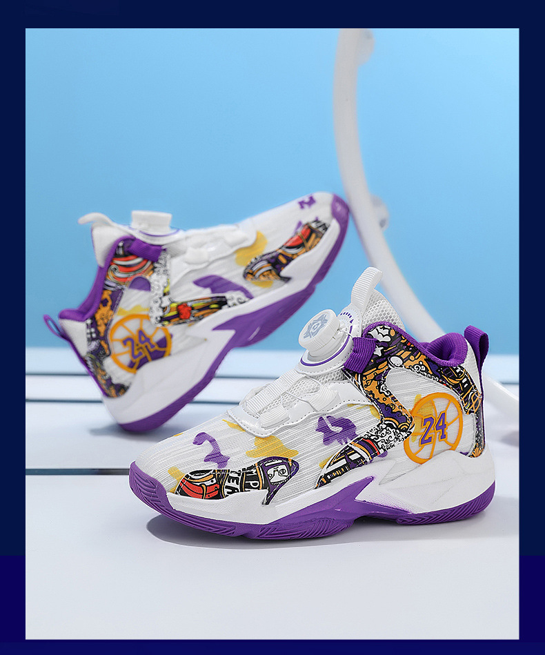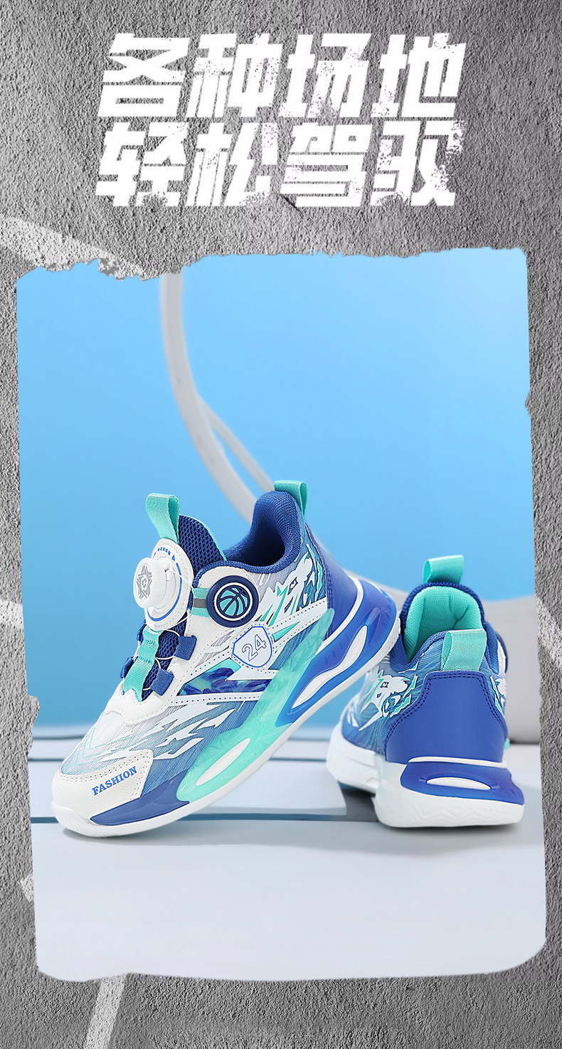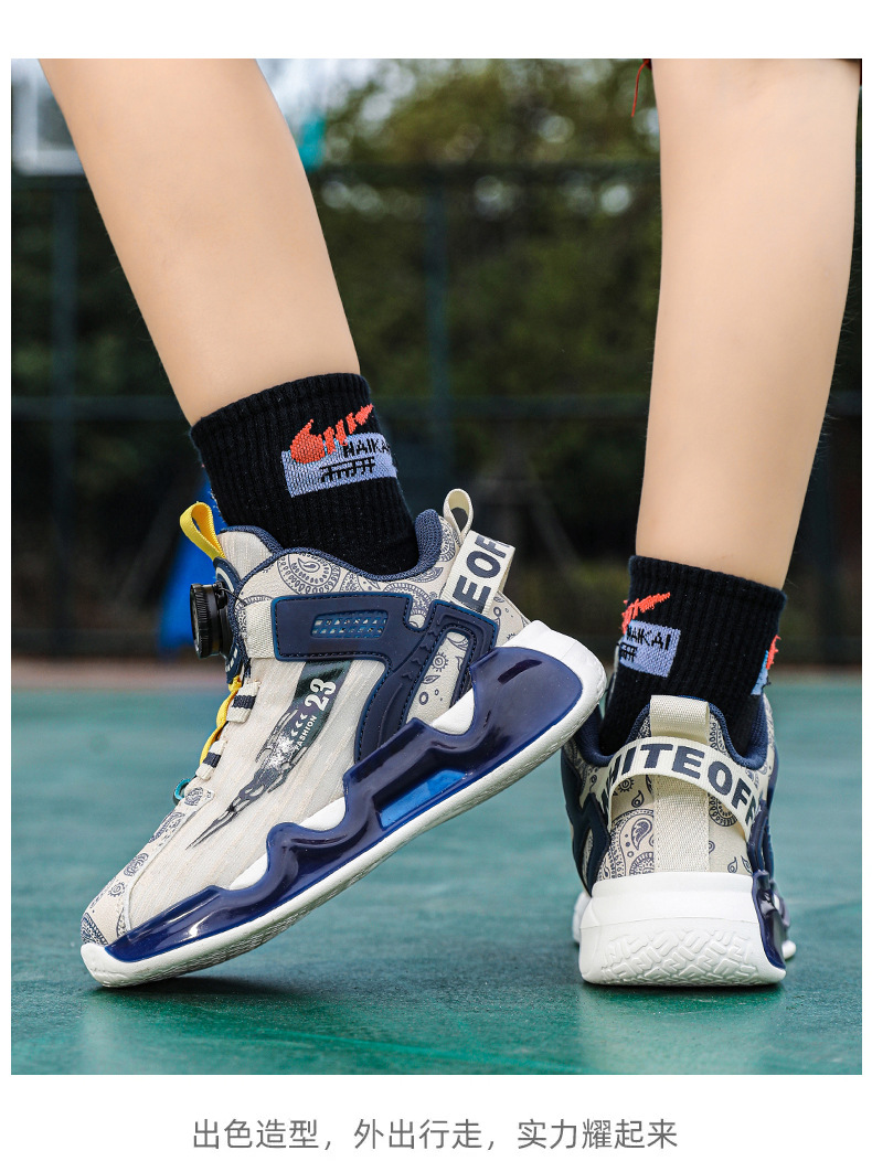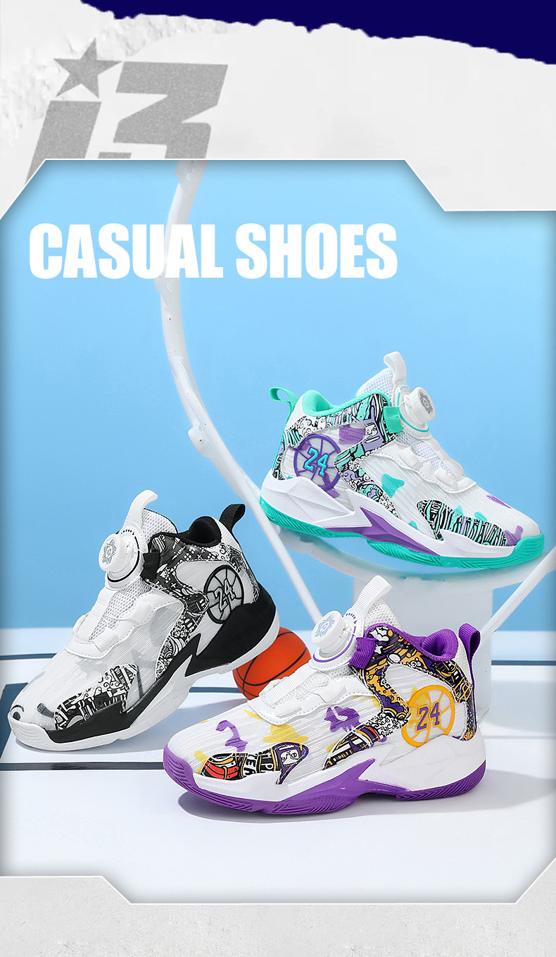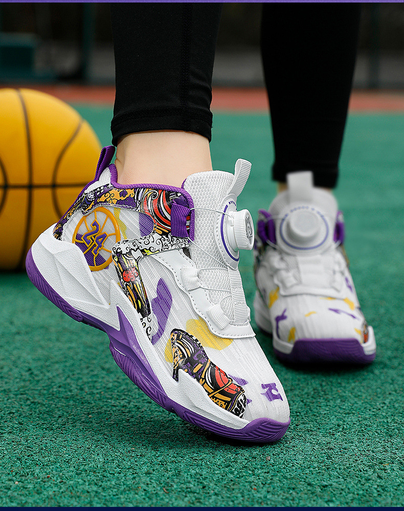 대외 무역 새로운 사계절 어린이 농구 신발 대형 어린이 로타리 버클 통기성 메쉬 미끄럼 방지 마모 방지 실용 운동화