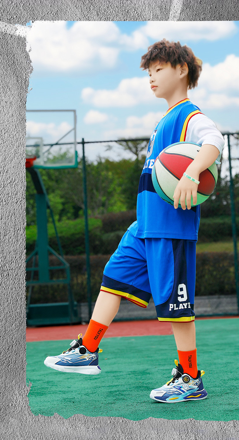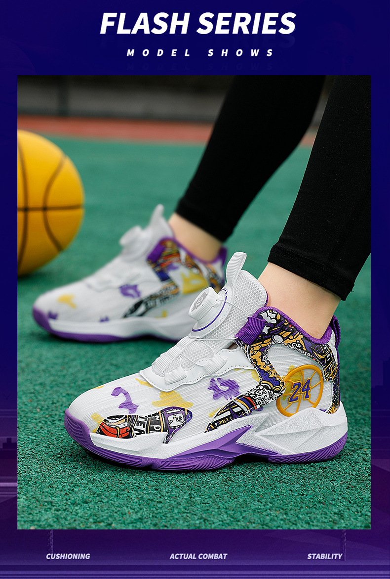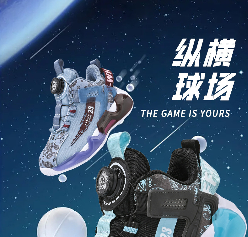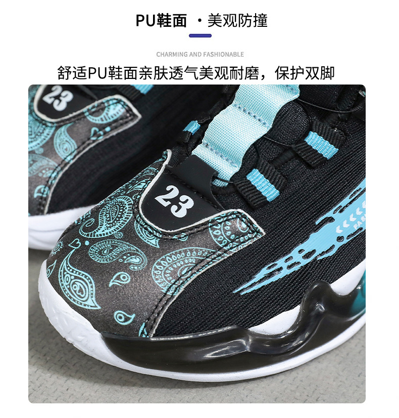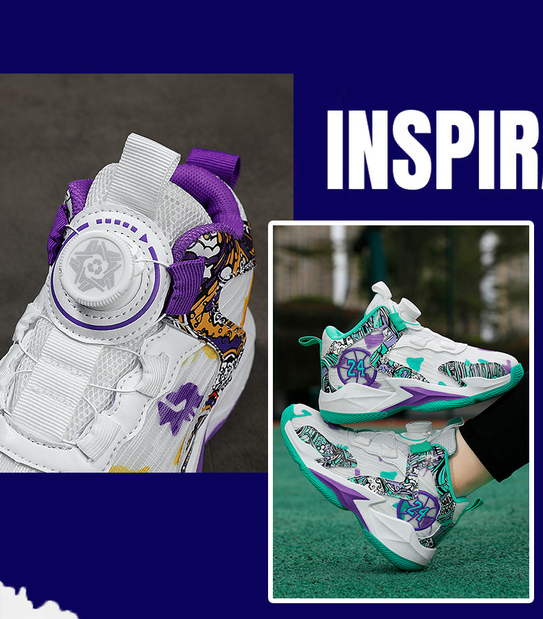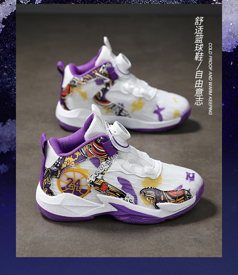 대외 무역 새로운 사계절 어린이 농구 신발 대형 어린이 로타리 버클 통기성 메쉬 미끄럼 방지 마모 방지 실용 운동화