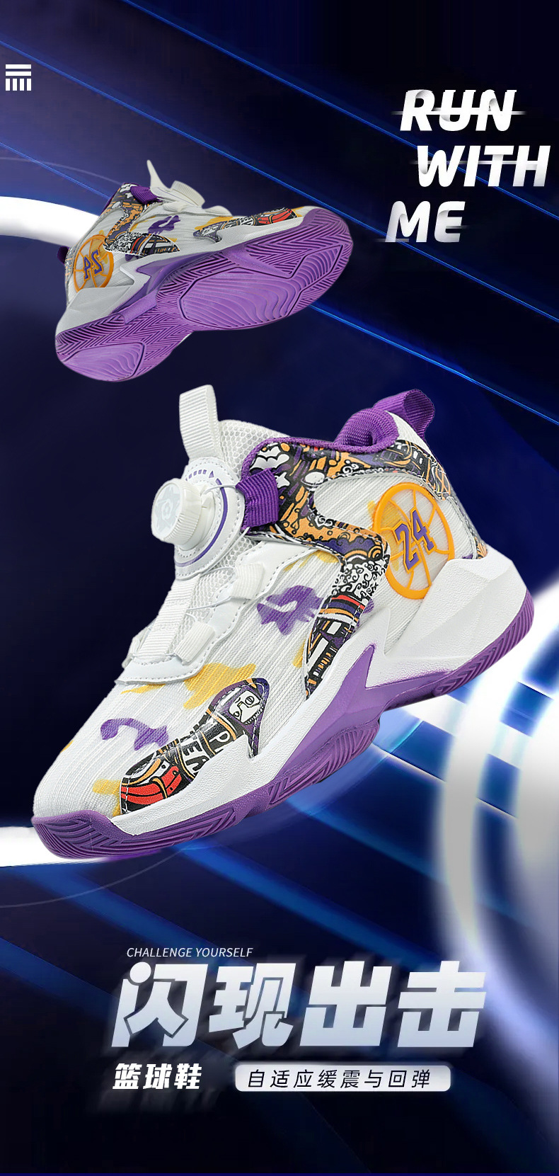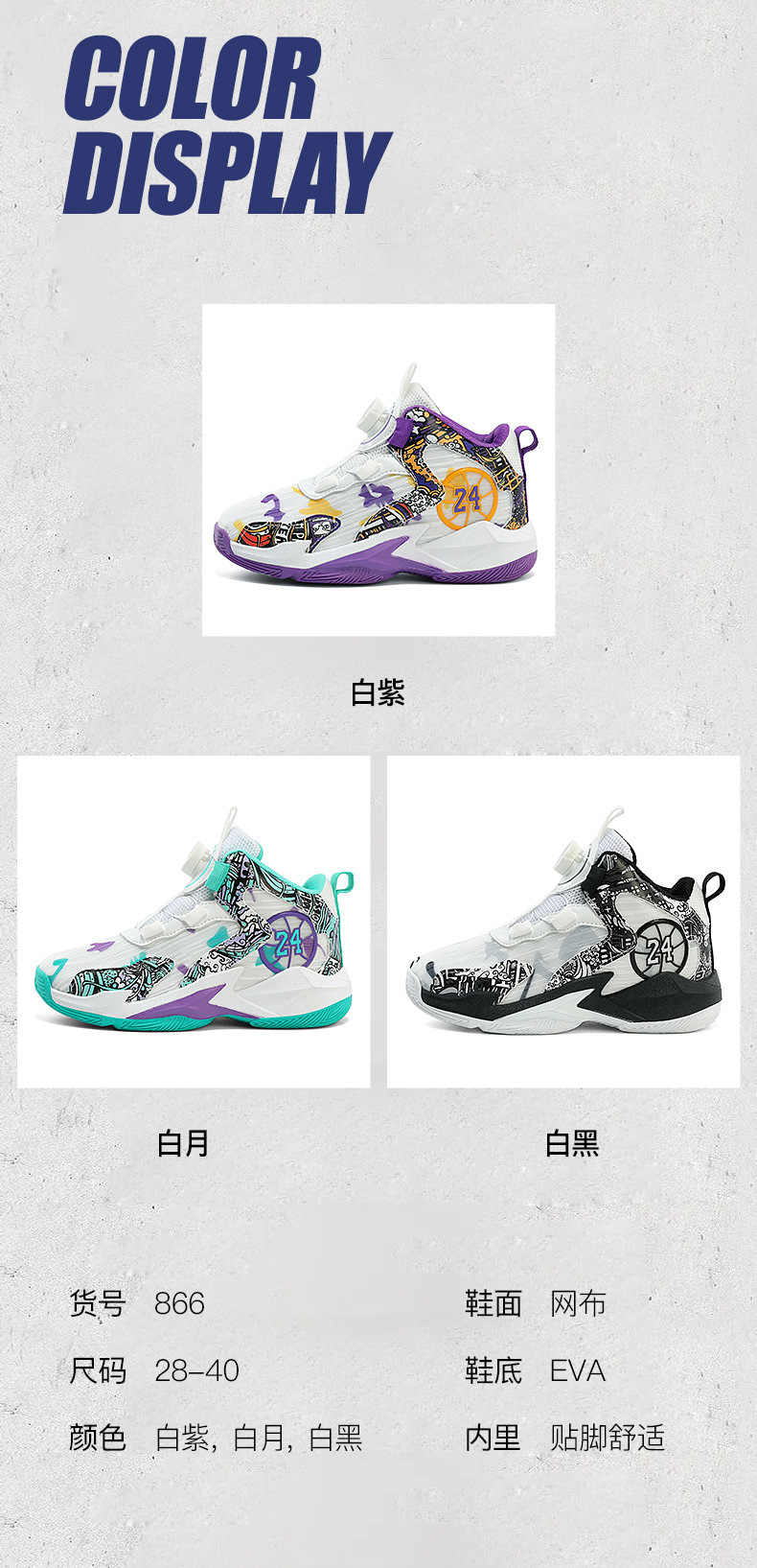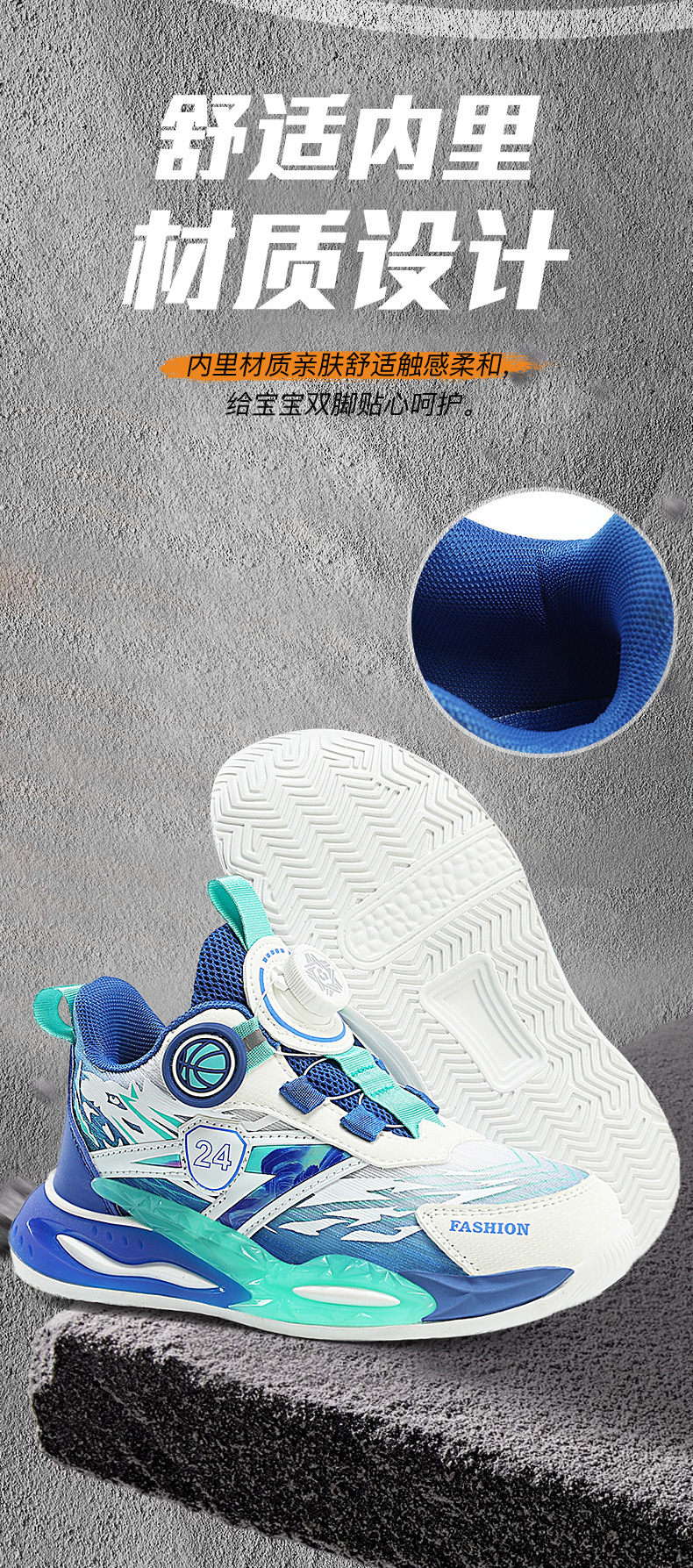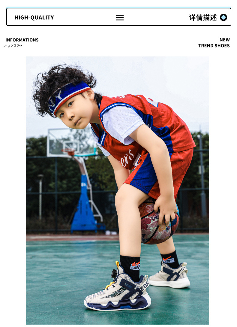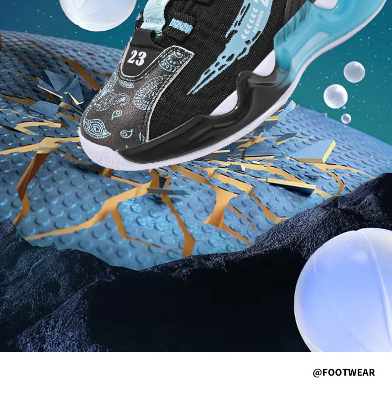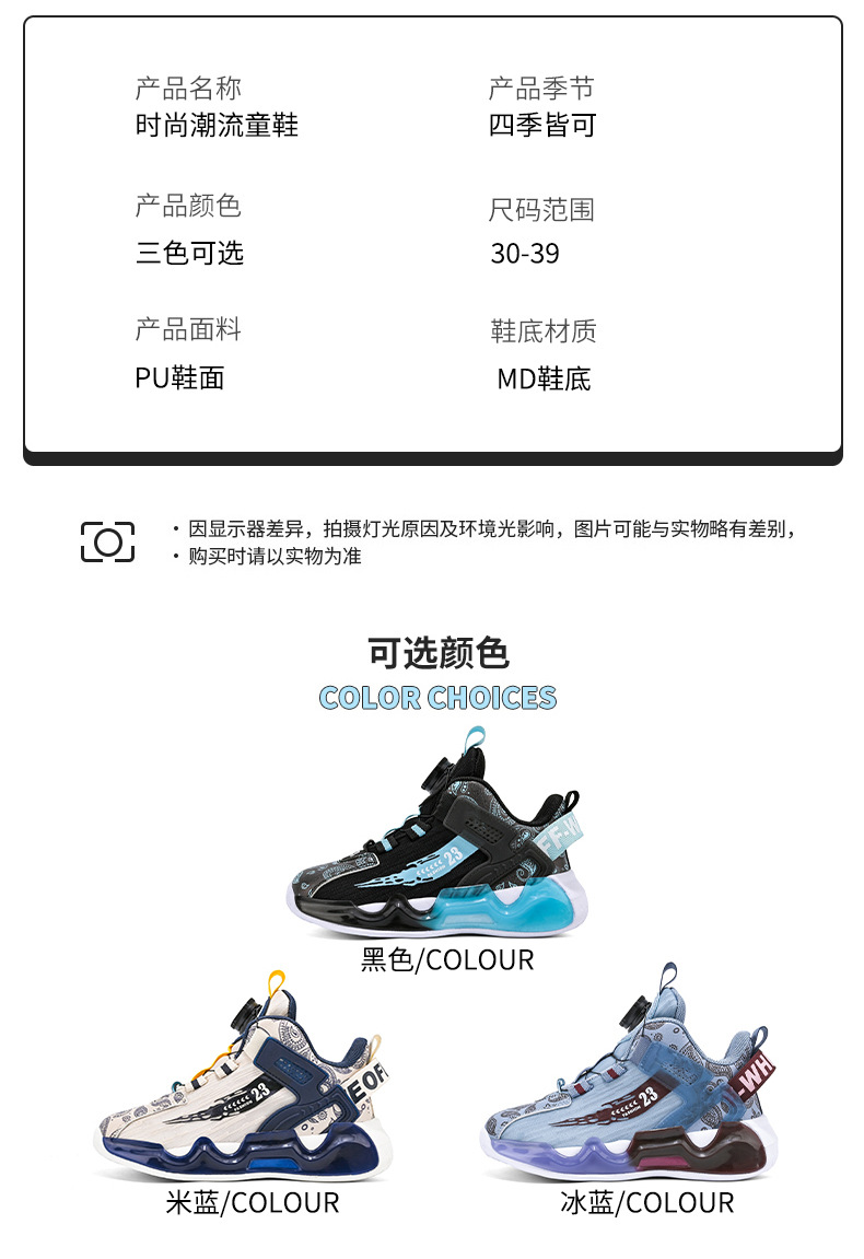 대외 무역 새로운 사계절 어린이 농구 신발 대형 어린이 로타리 버클 통기성 메쉬 미끄럼 방지 마모 방지 실용 운동화