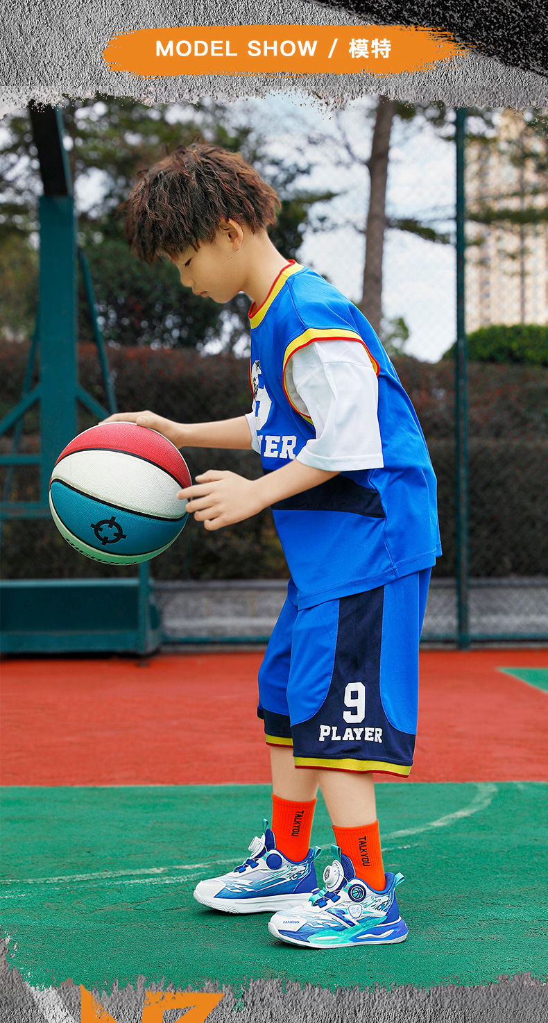 대외 무역 새로운 사계절 어린이 농구 신발 대형 어린이 로타리 버클 통기성 메쉬 미끄럼 방지 마모 방지 실용 운동화스토어 가기