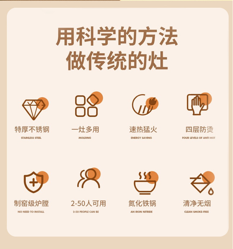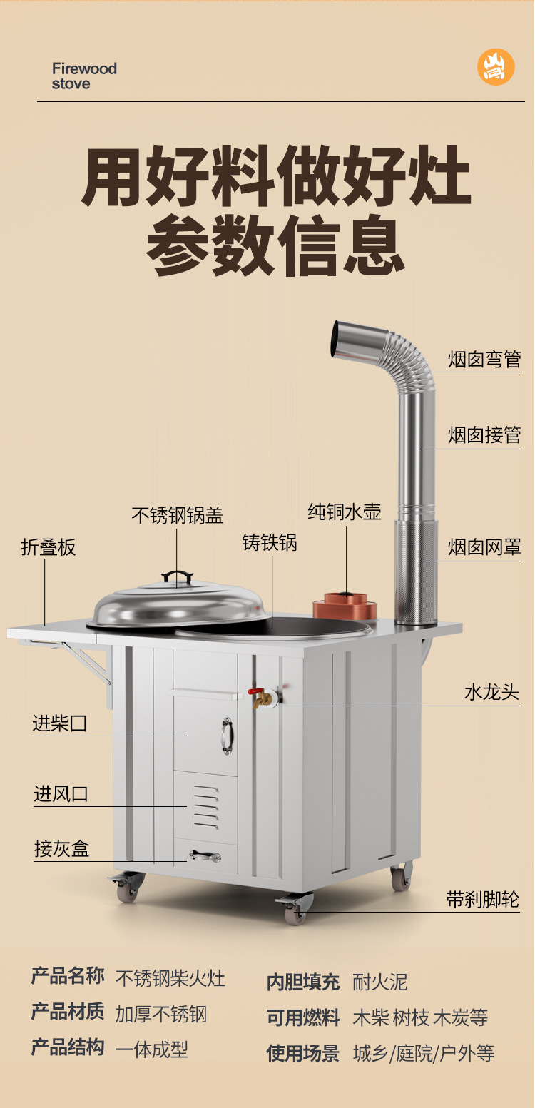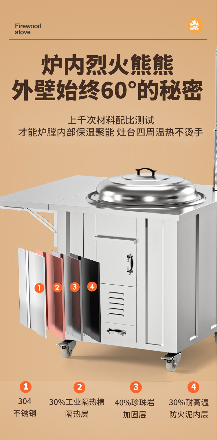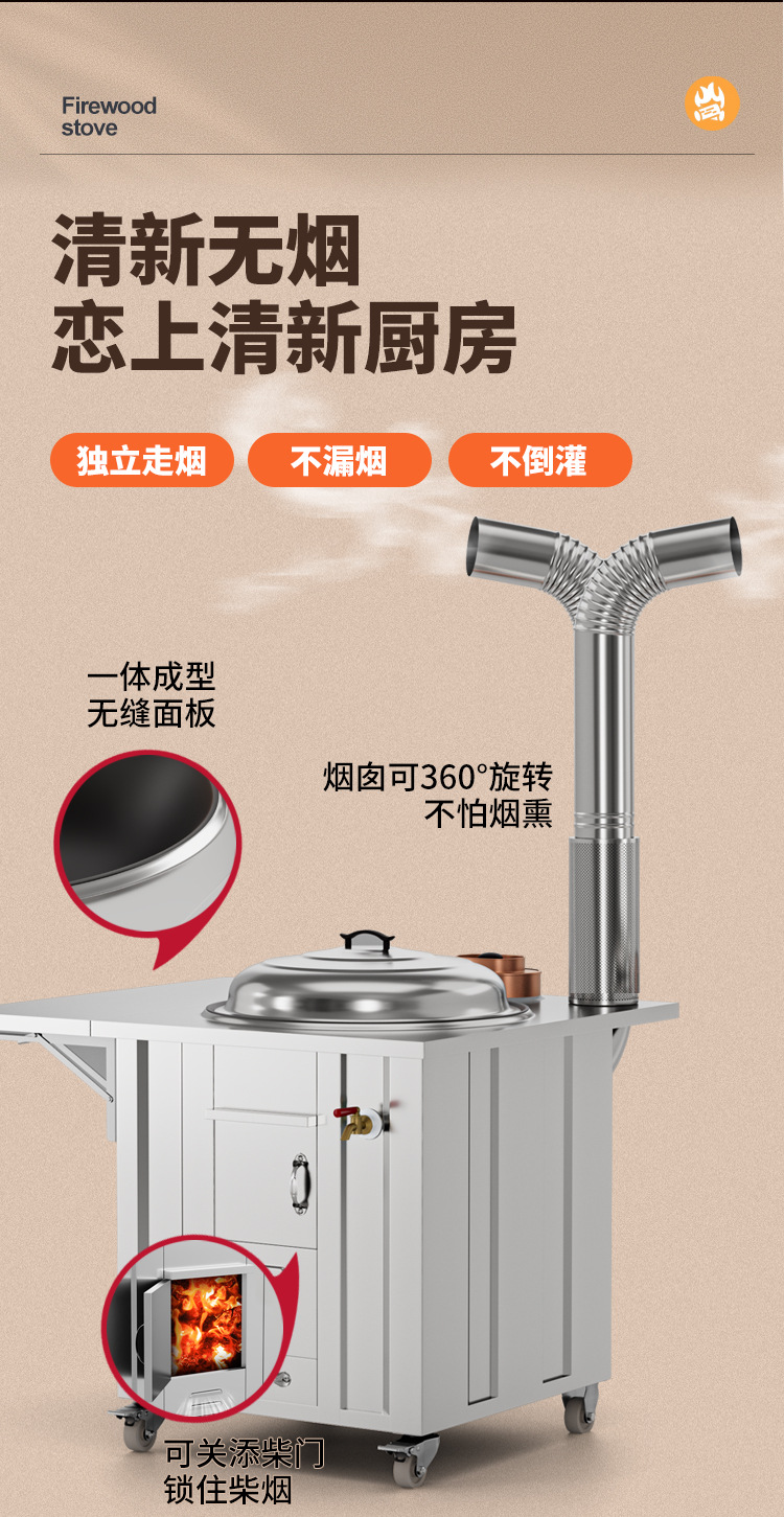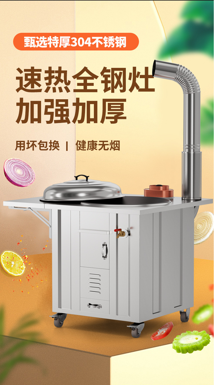 새로운 304 스테인레스 스틸 장작 스토브 농촌 가정 무연 스토브 나무 굽기 농장 큰 냄비 이동식스토어 가기