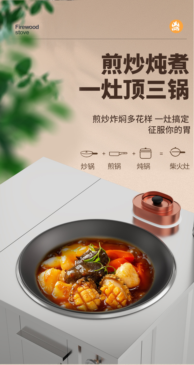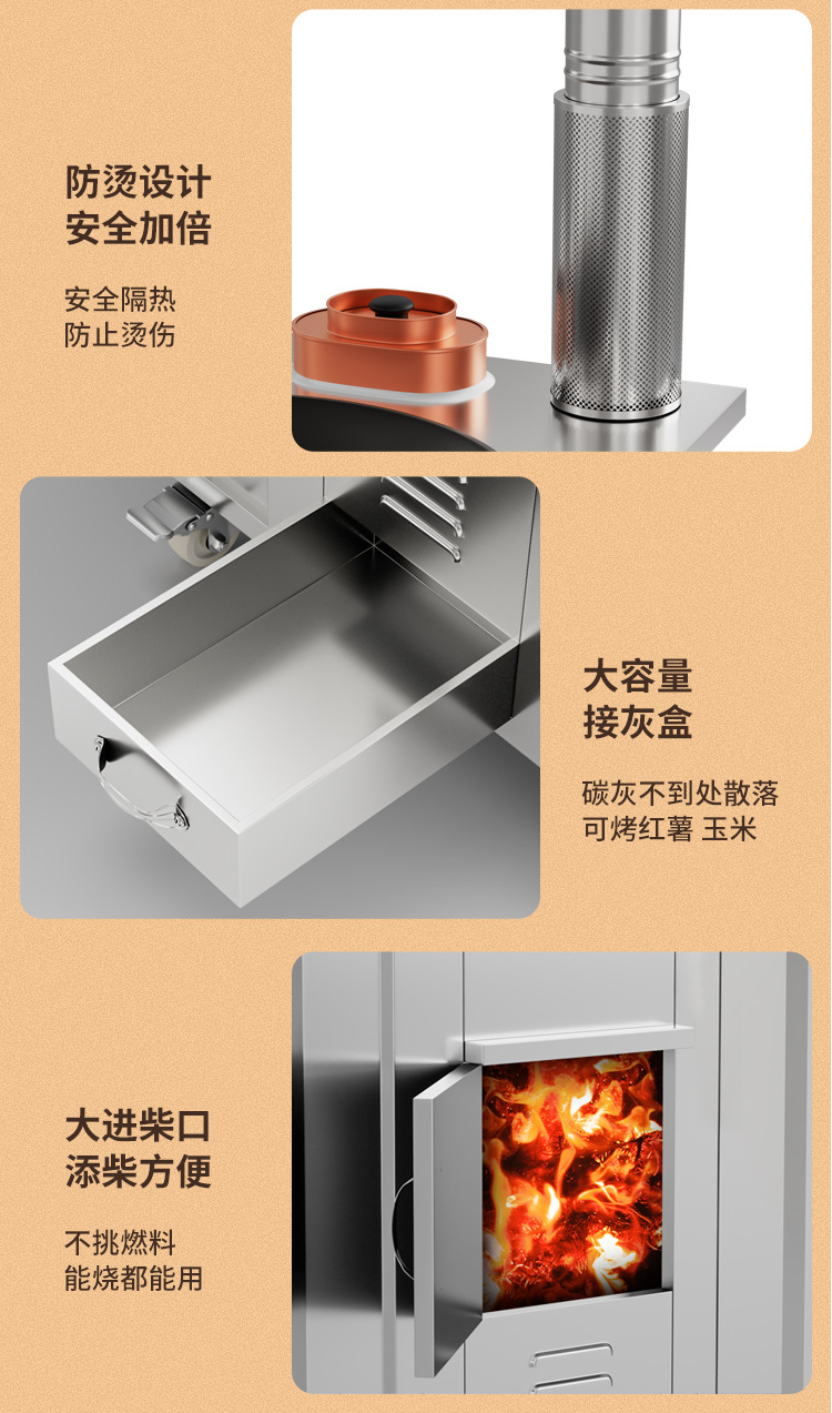새로운 304 스테인레스 스틸 장작 스토브 농촌 가정 무연 스토브 나무 굽기 농장 큰 냄비 이동식