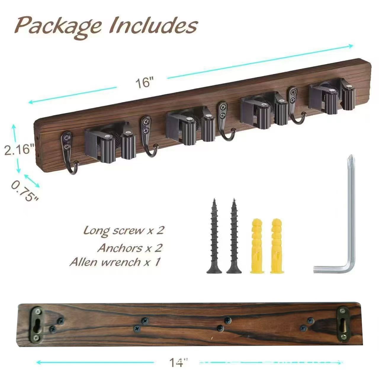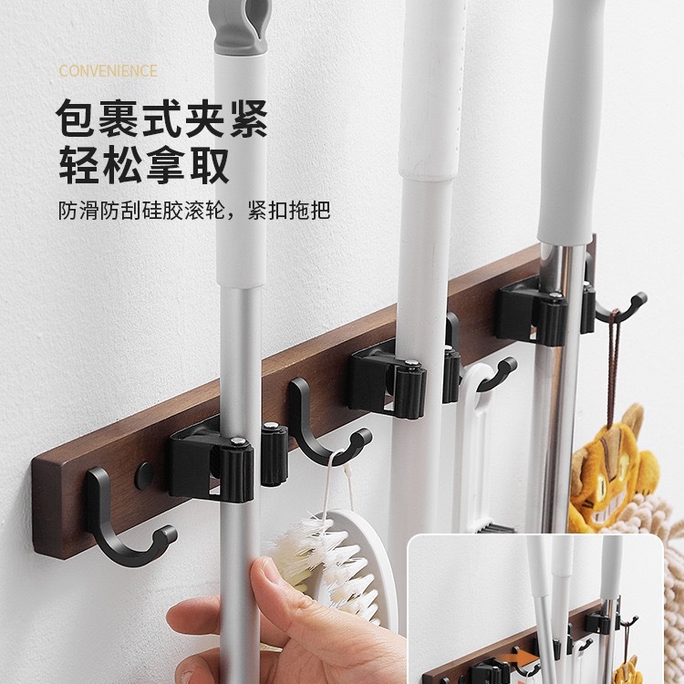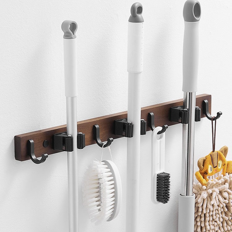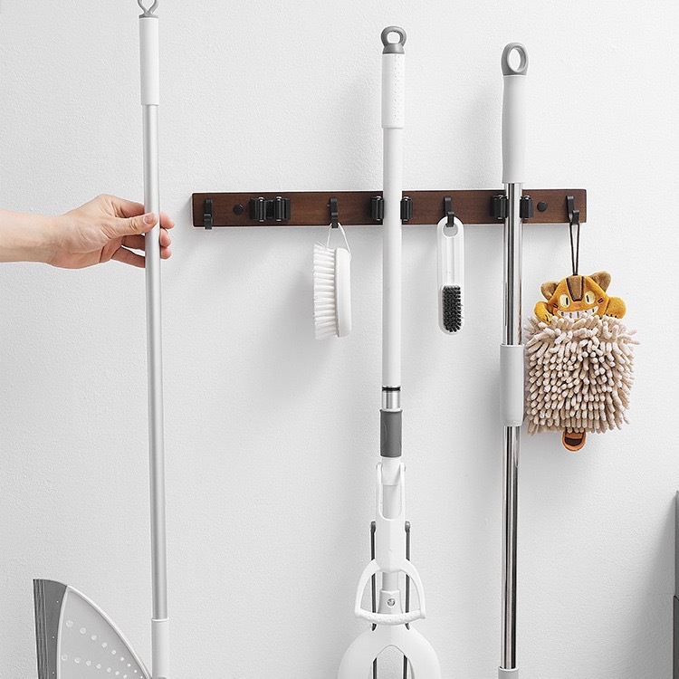 철-목재 조합 걸레 후크 선반 호두 걸레 봄 행거 비 천공 저장 랙