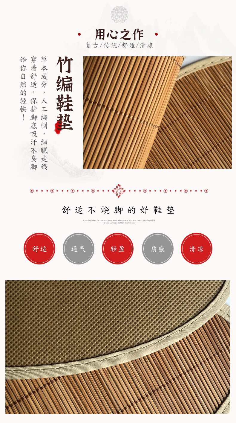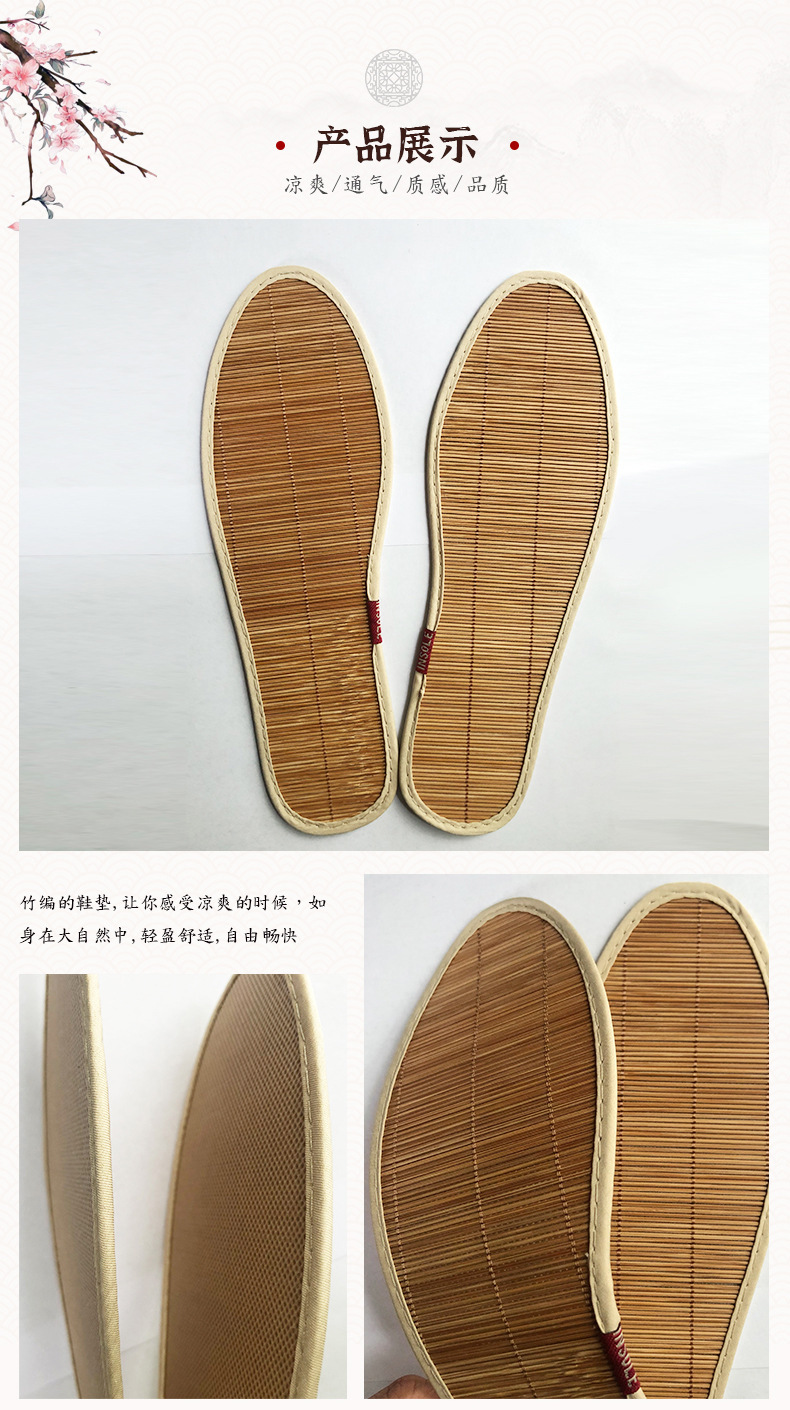여름 여름 매트 깔창 땀 흡수성 남성과 여성의 얇은 대나무 깔창 통기성 경량 시원한 스포츠 편안한 대나무 매트 신발스토어 가기