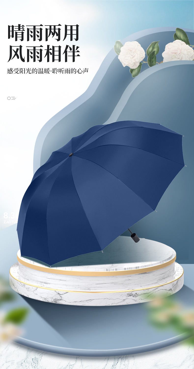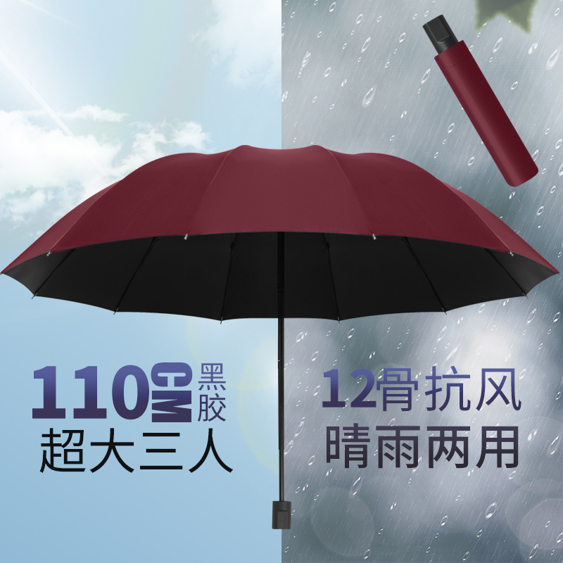 12 뼈 단색 사업 우산 세 접는 이중 목적 양산 태양 우산 대형 선 스크린 사업 광고 우산 로고