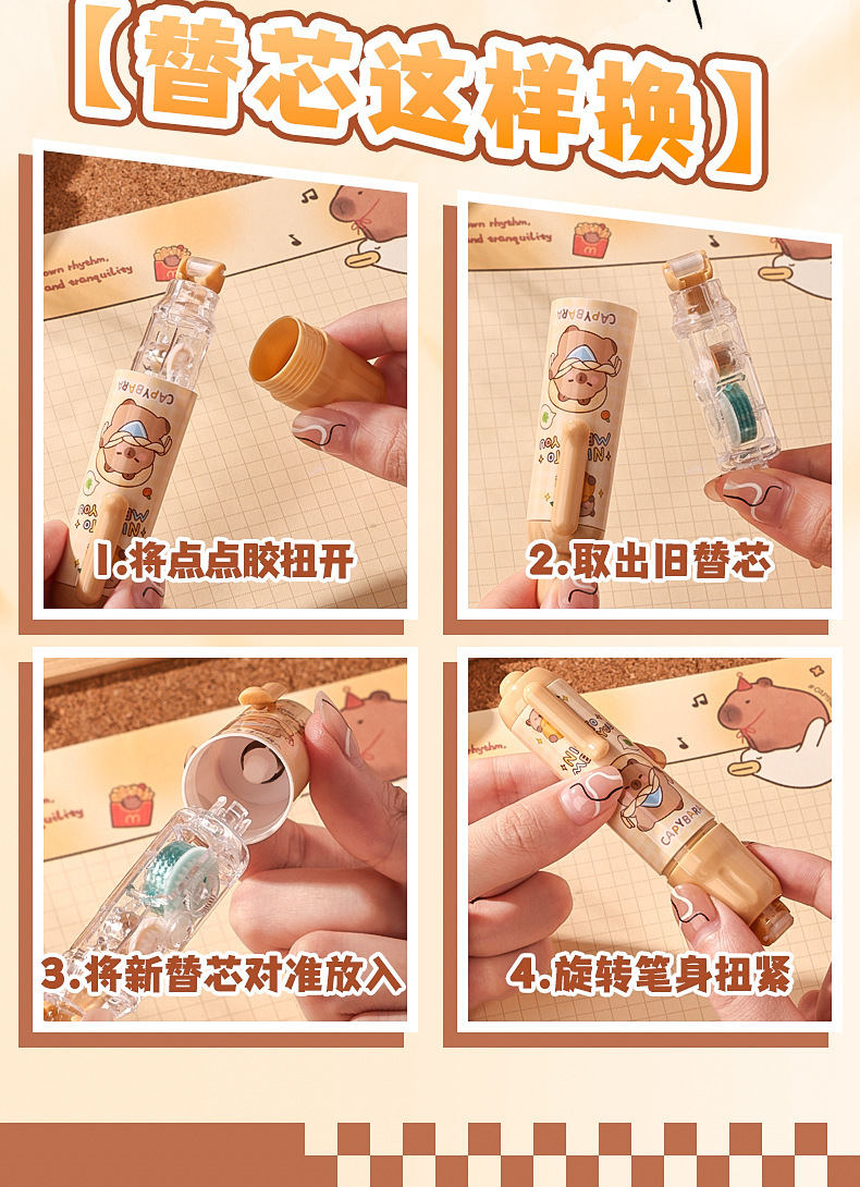 작은 접착제 손 계정 분배 펜 어린이 수동 투명 양면 테이프 큰 용량 교체 가능한 코어 자국을 남기지 않고 누르십시오.스토어 가기