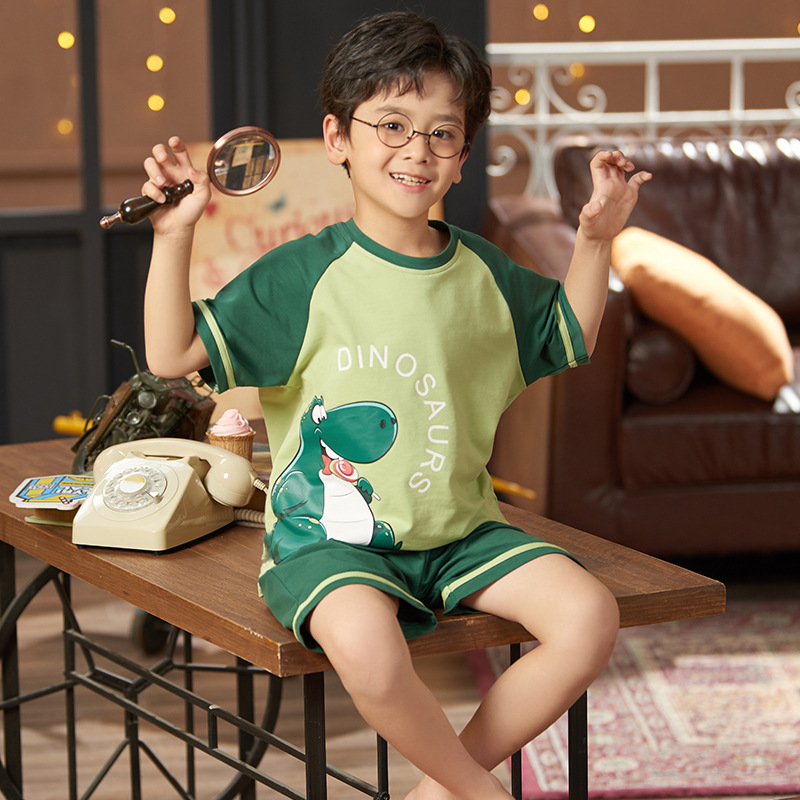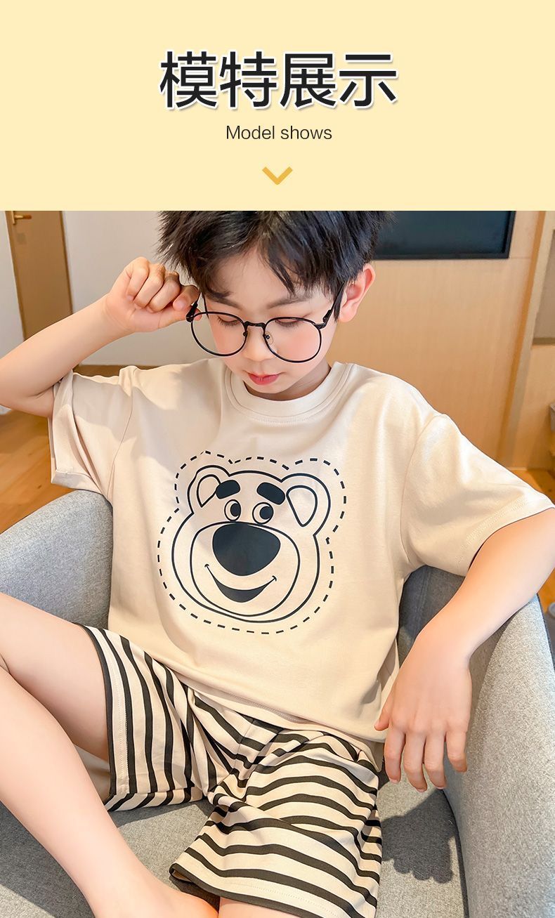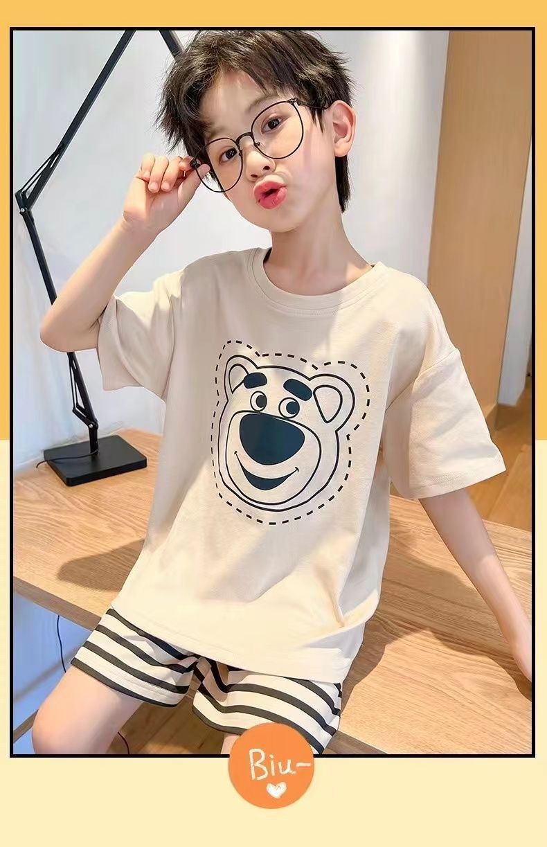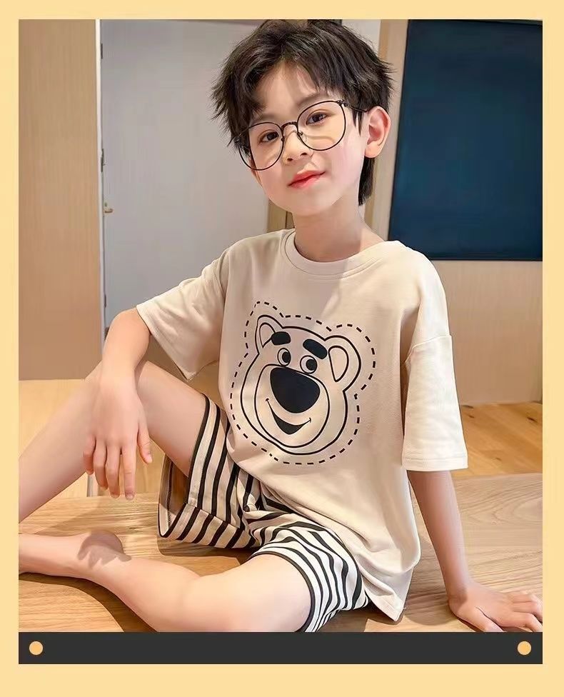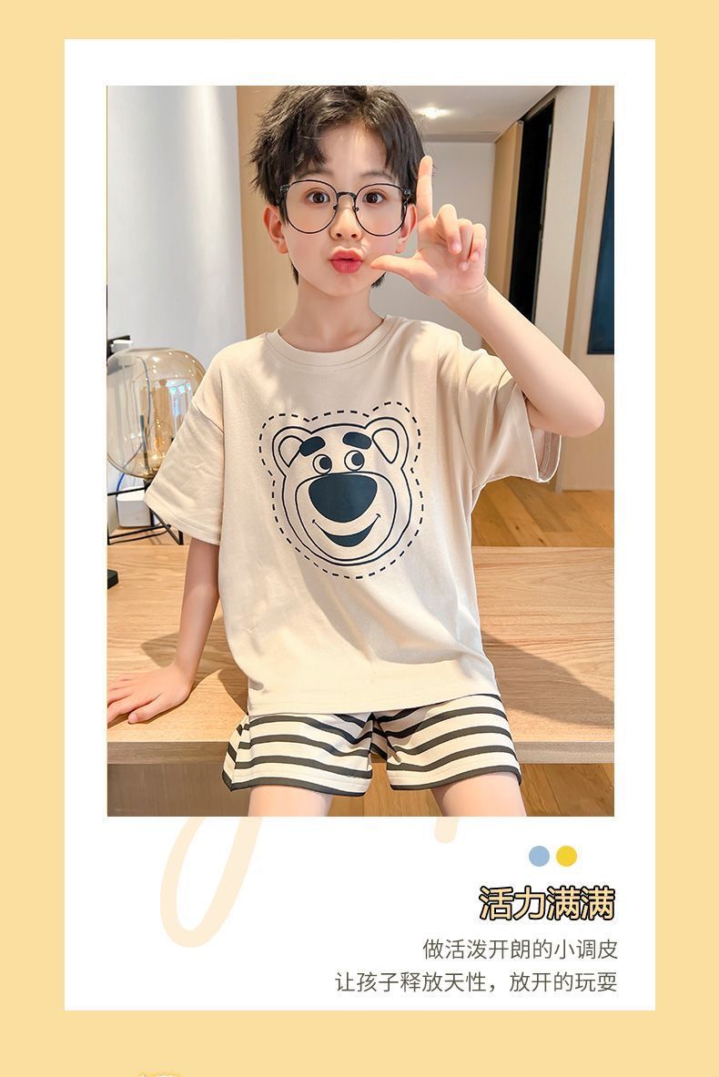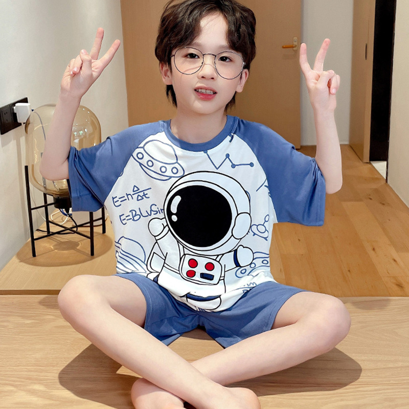 어린이 잠옷 소년 여름 반팔 반바지 얇은 만화 중형 및 대형 어린이 여름 스타일 소년 홈 의류스토어 가기