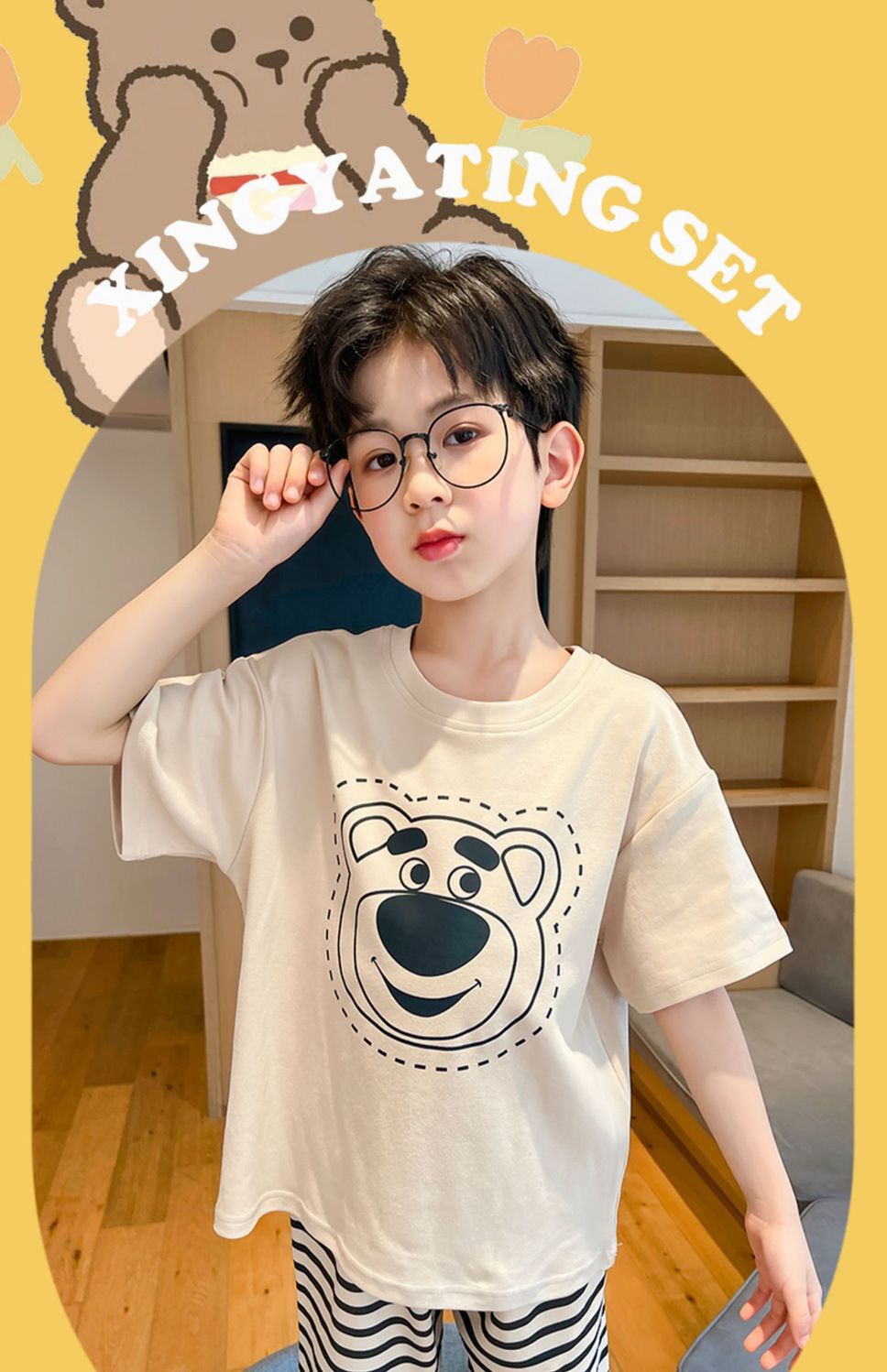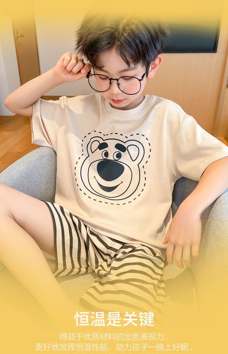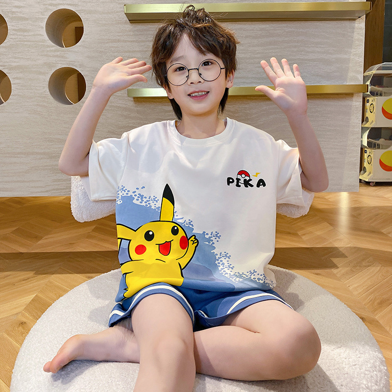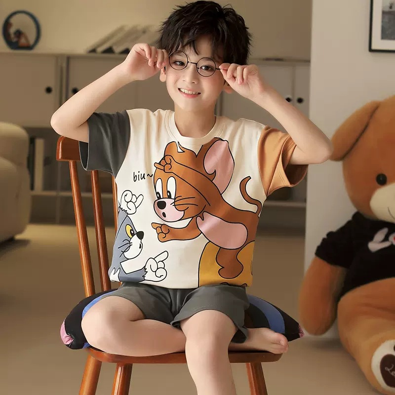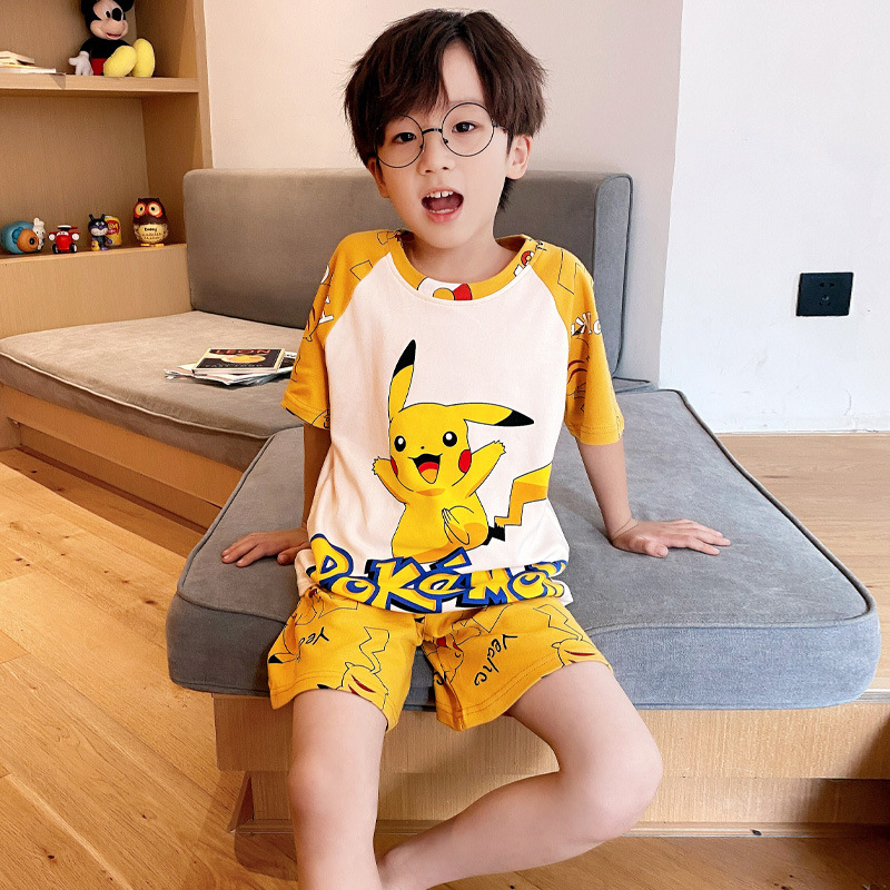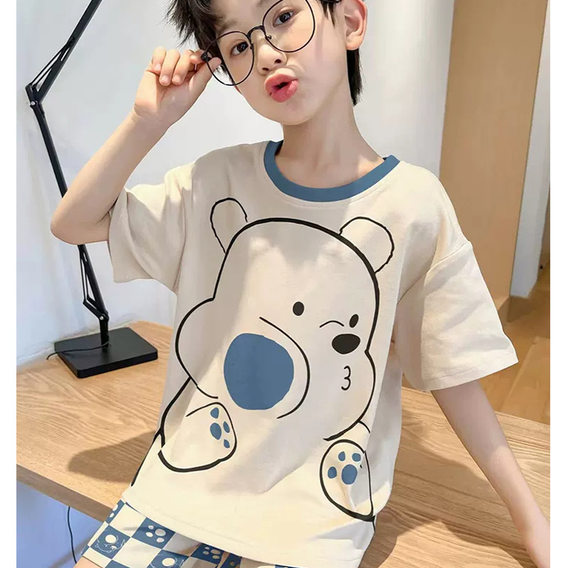 어린이 잠옷 소년 여름 반팔 반바지 얇은 만화 중형 및 대형 어린이 여름 스타일 소년 홈 의류스토어 가기