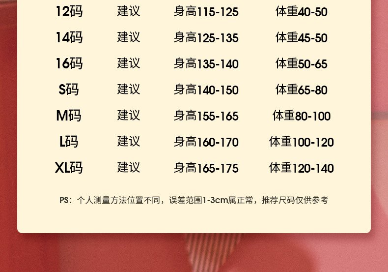• XL 코드 "권장 높이 165-170cm]