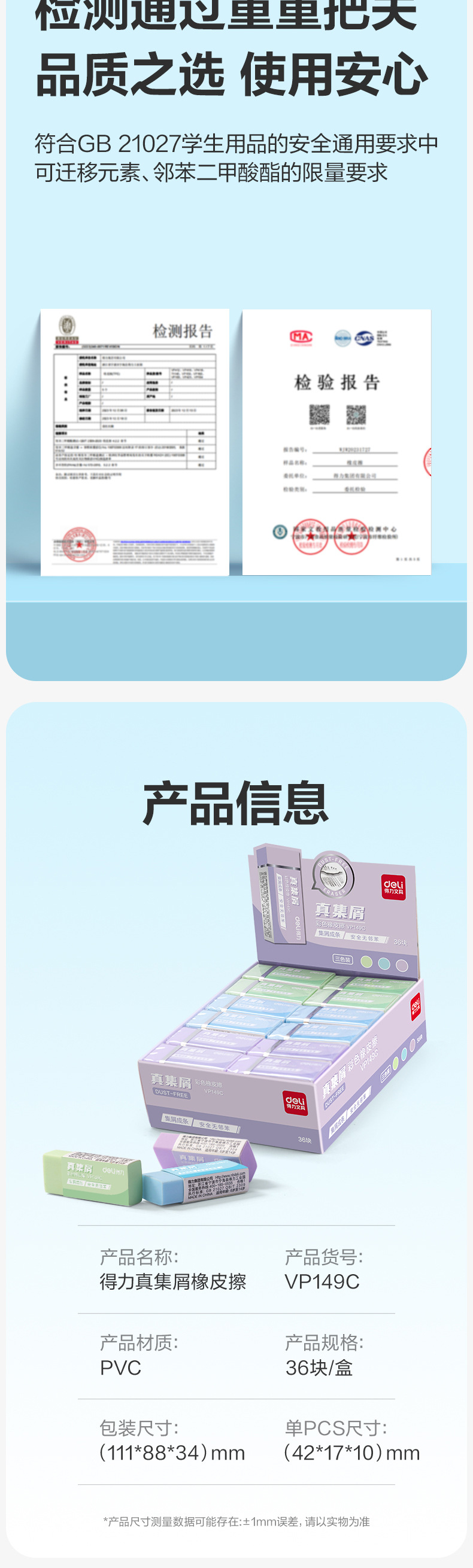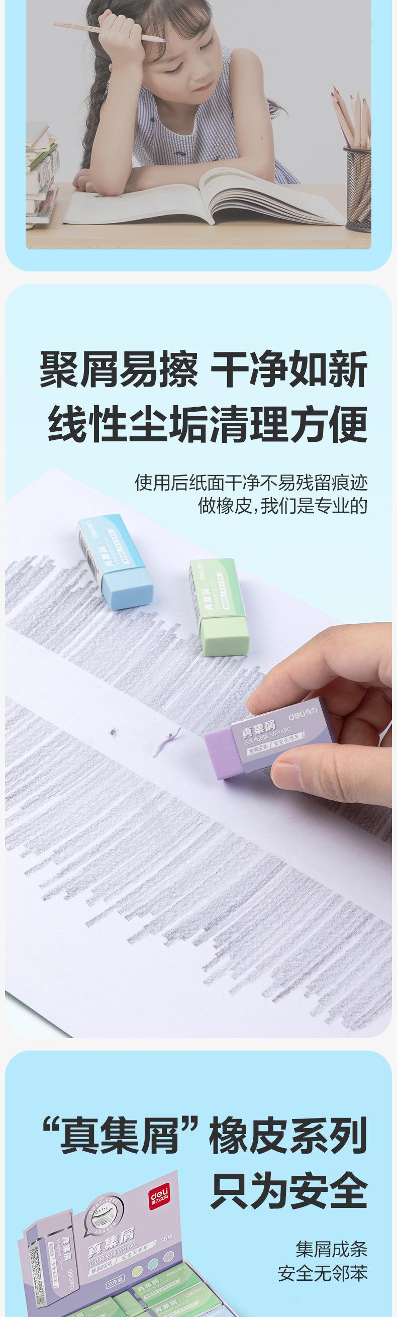 Deli VP149C/VP150C 학생들을위한 지우개 특수 지우개 예술 덜 스크랩 학습 문구 연필 지우개스토어 가기