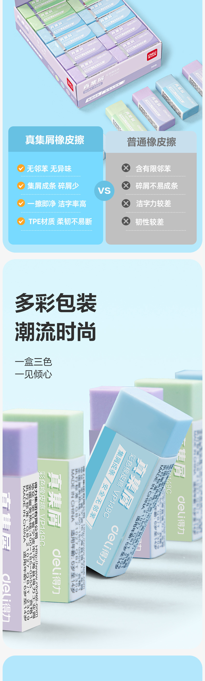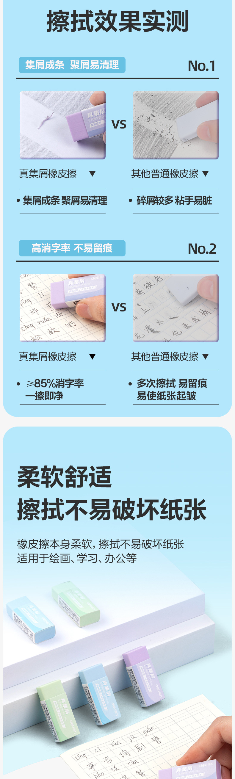 Deli VP149C/VP150C 학생들을위한 지우개 특수 지우개 예술 덜 스크랩 학습 문구 연필 지우개