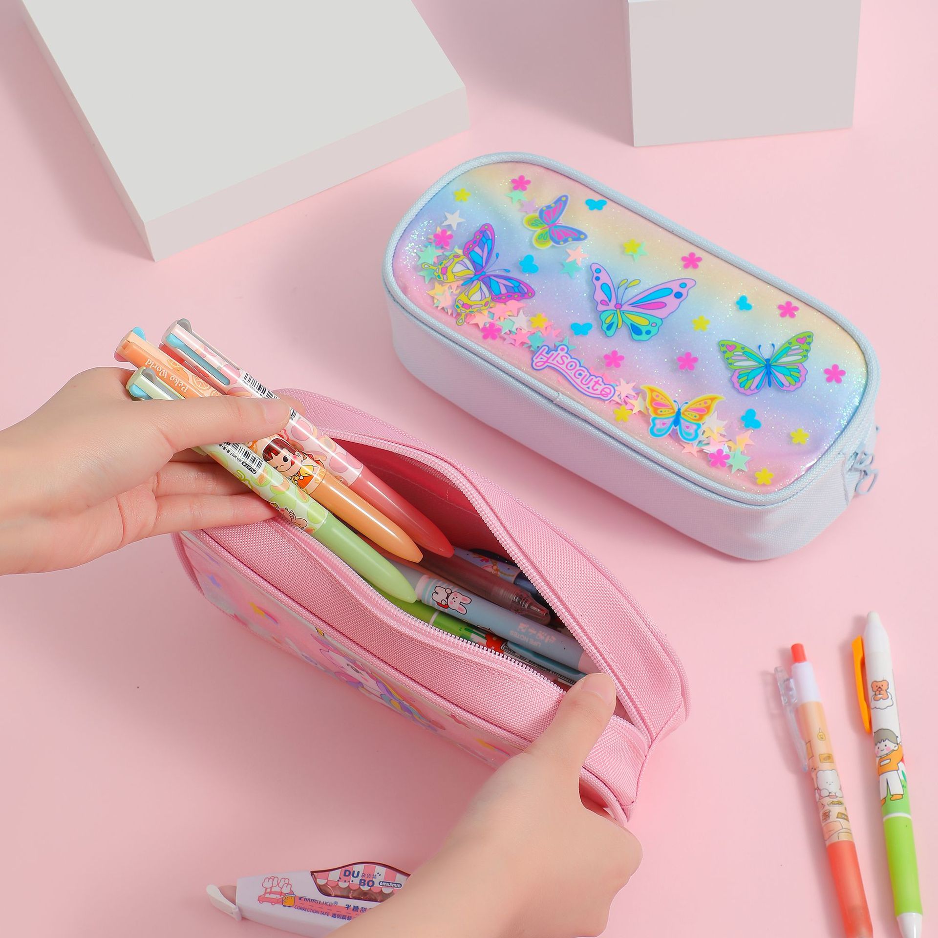 새로운 느슨한 파우더 만화 연필 케이스 국경 유니콘 시리즈 어린이 문구 보관 가방 학생 대용량 문구 상자스토어 가기