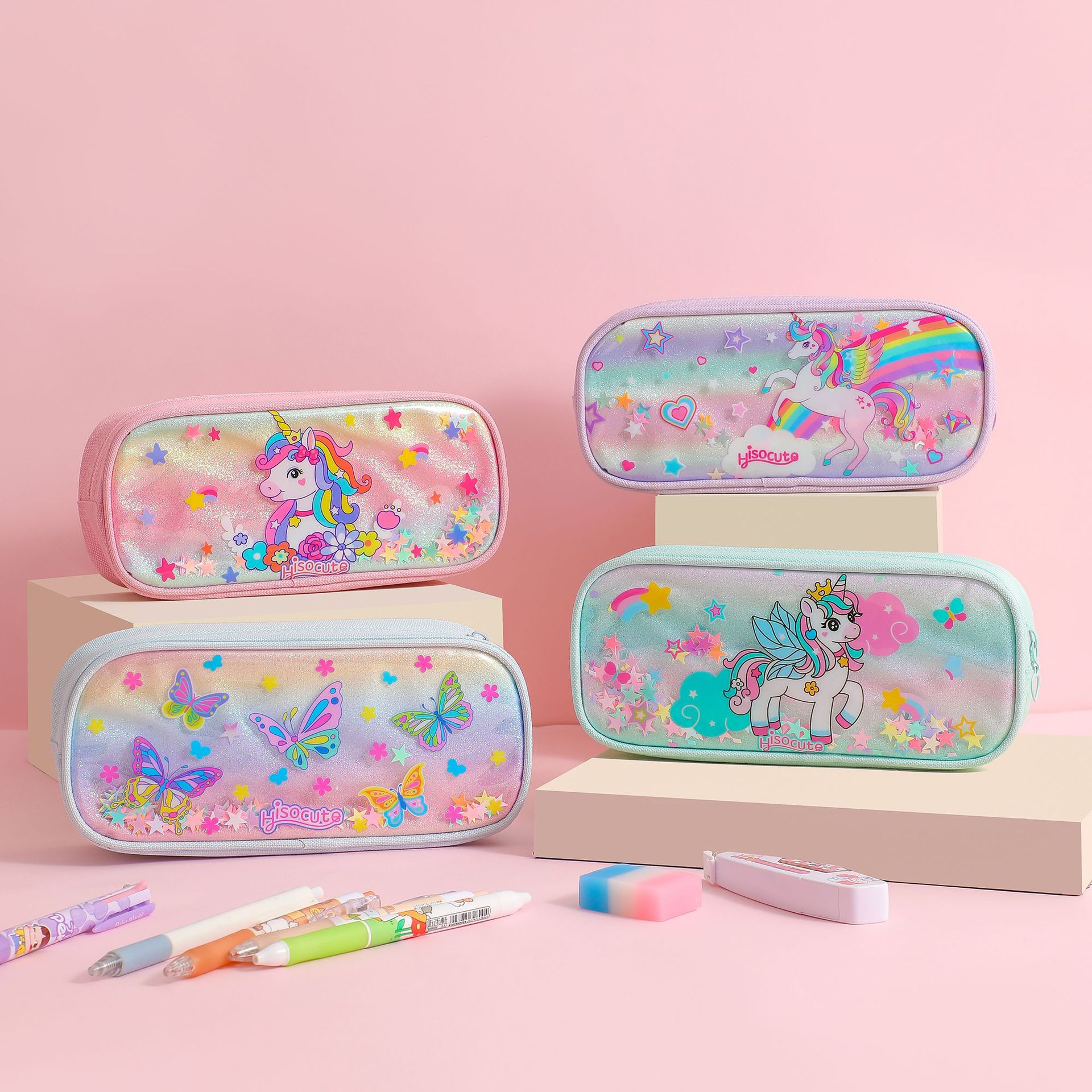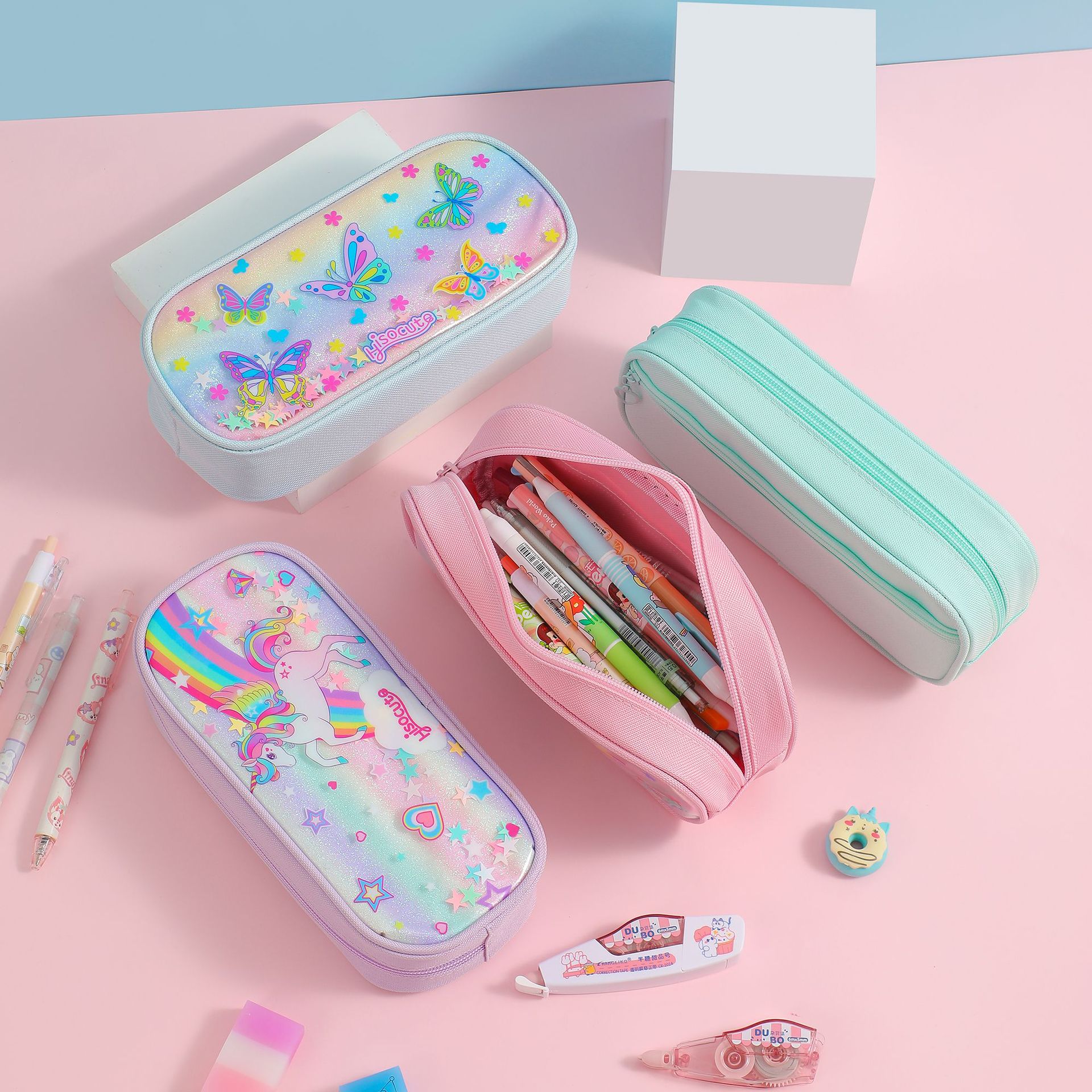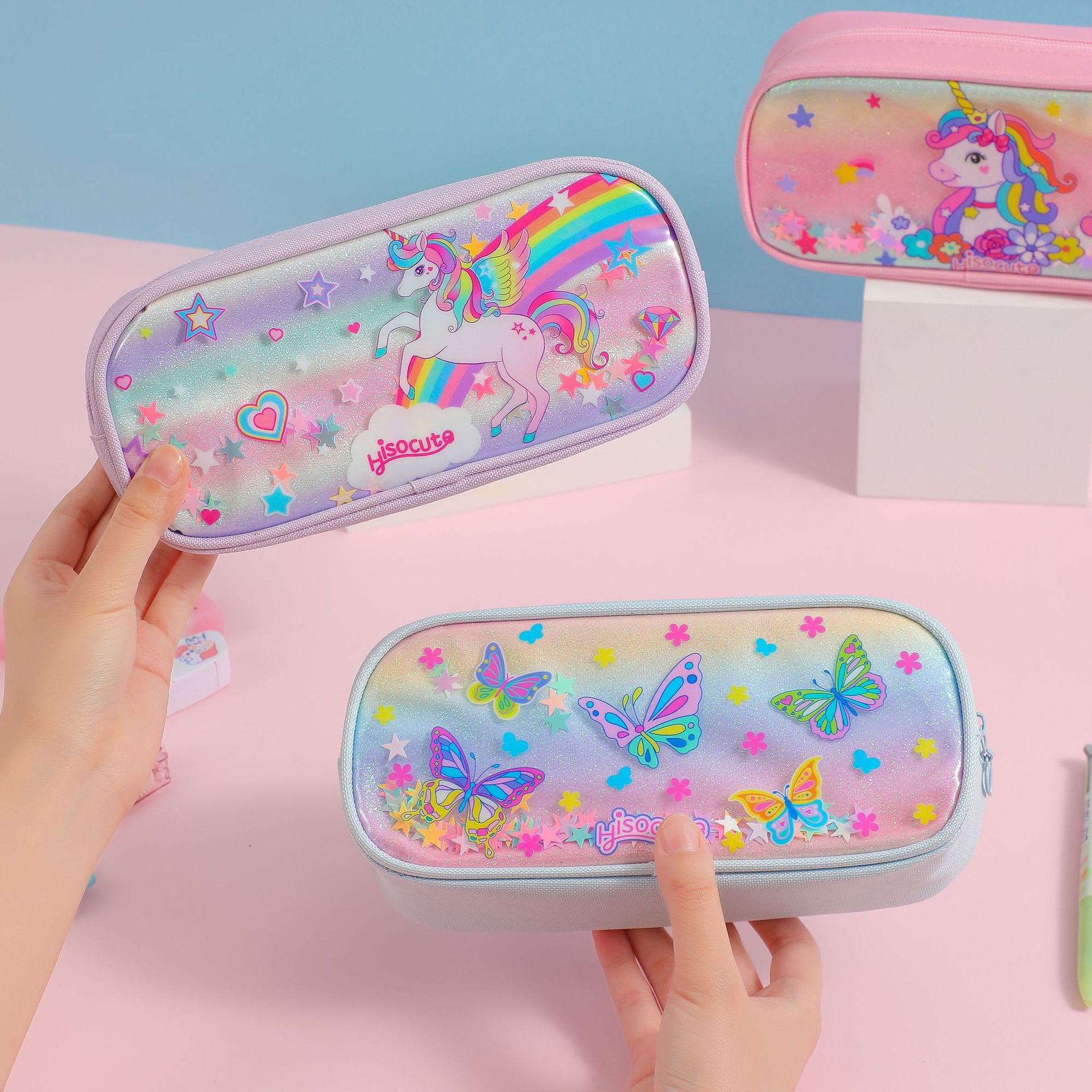 새로운 느슨한 파우더 만화 연필 케이스 국경 유니콘 시리즈 어린이 문구 보관 가방 학생 대용량 문구 상자