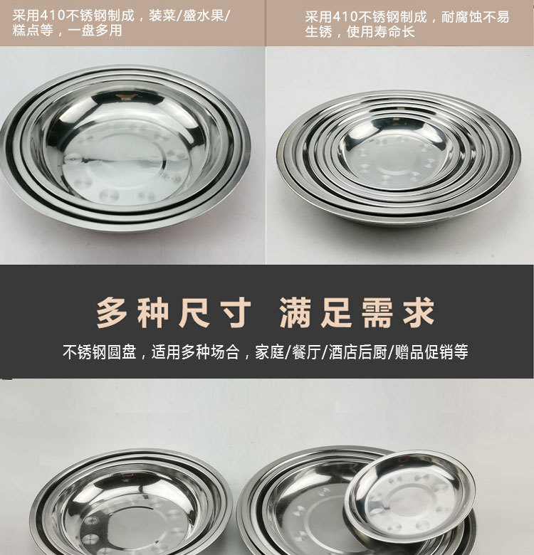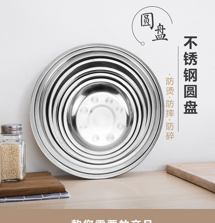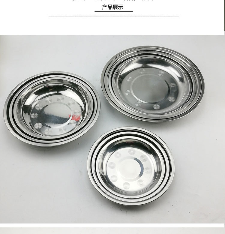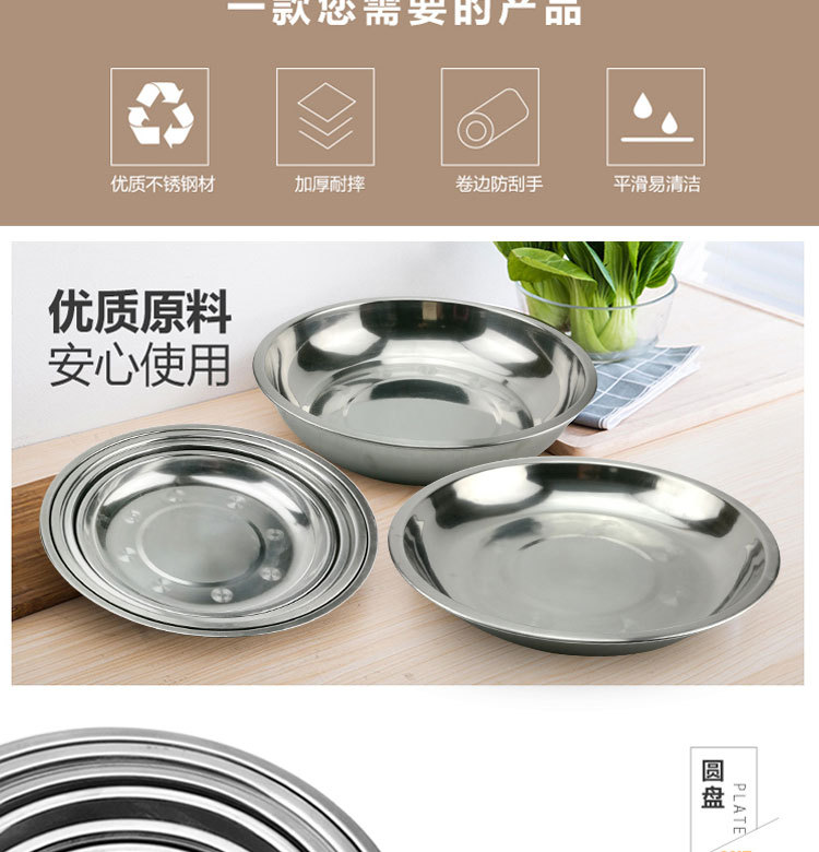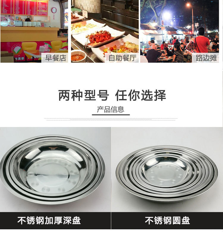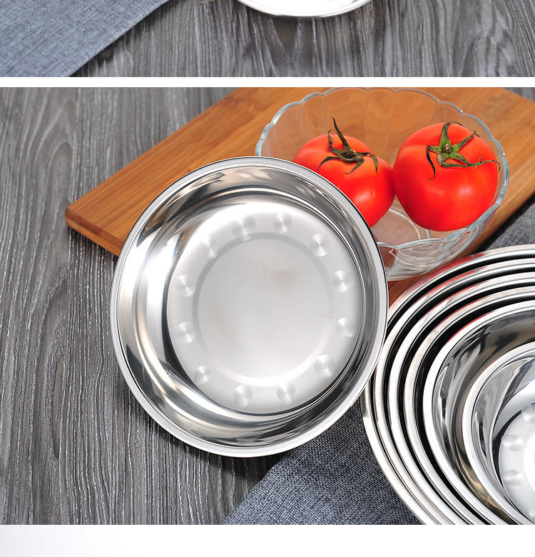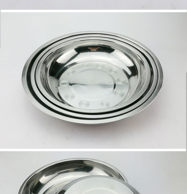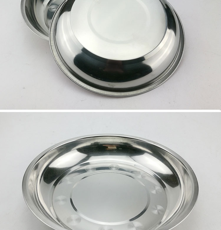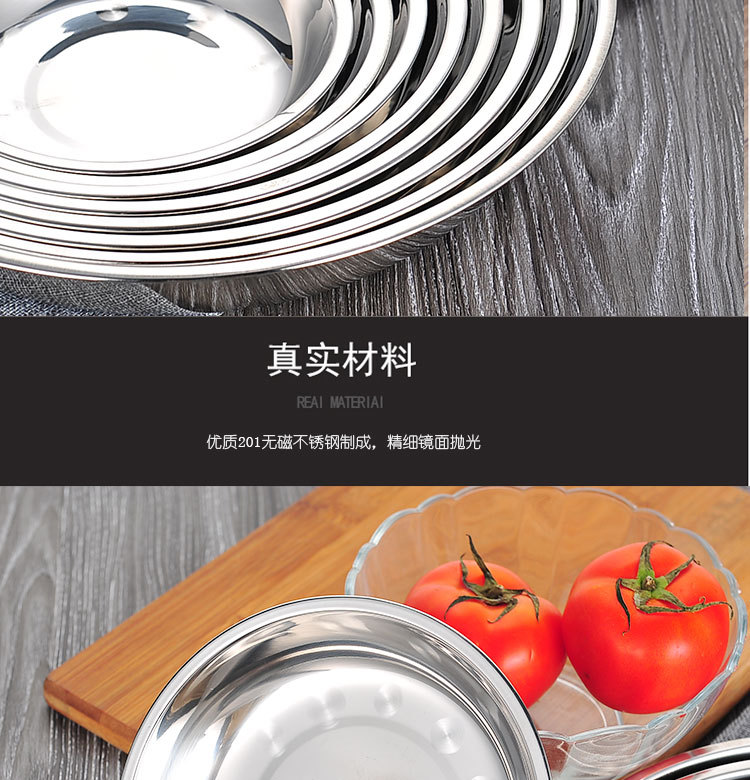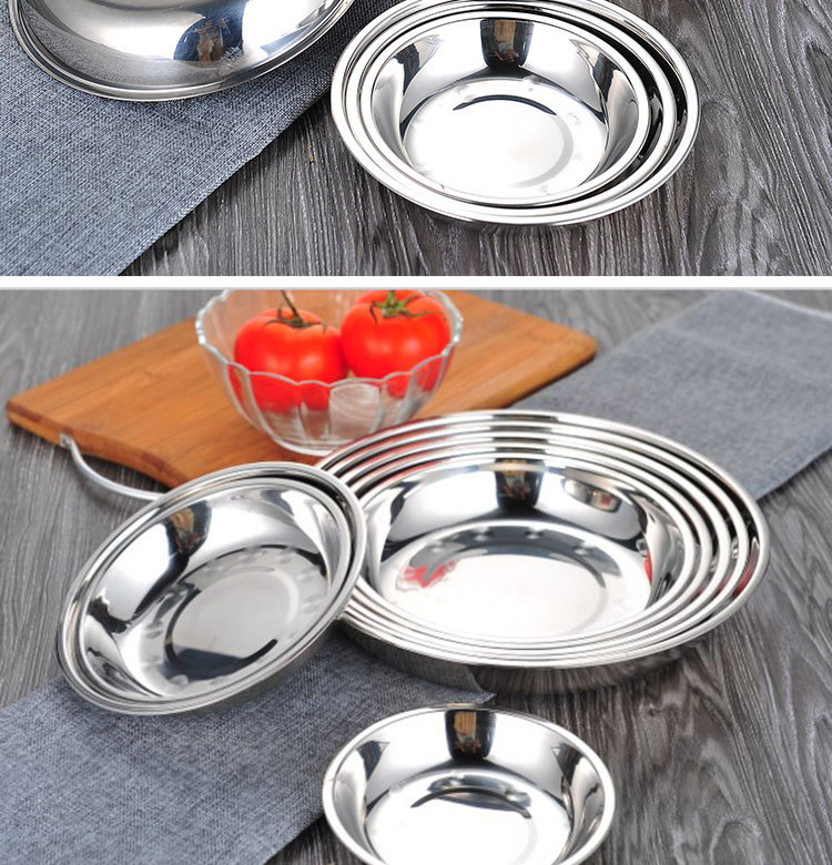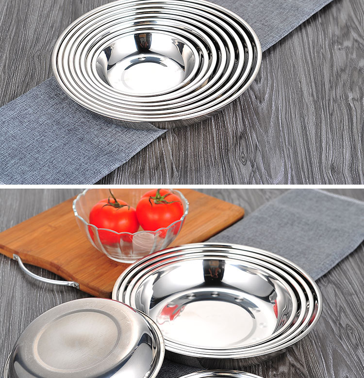 도매 스테인레스 스틸 트레이 304 식품 등급 플레이트 라운드 딥 플레이트 가정용 주방 학교 매점 생선 요리스토어 가기