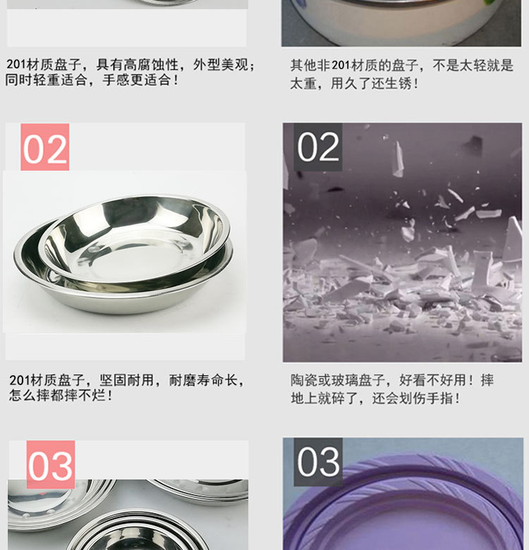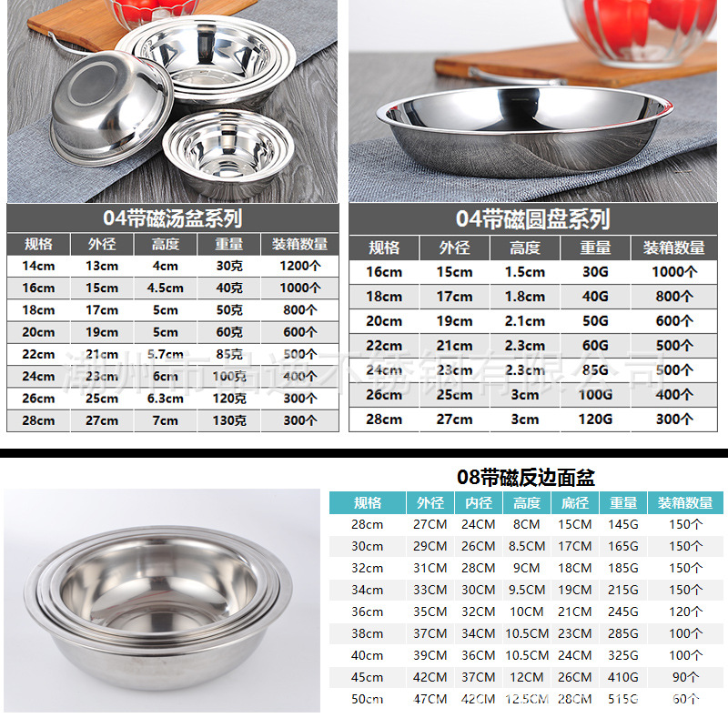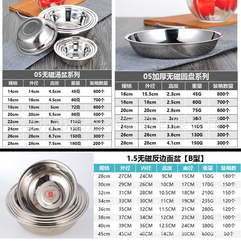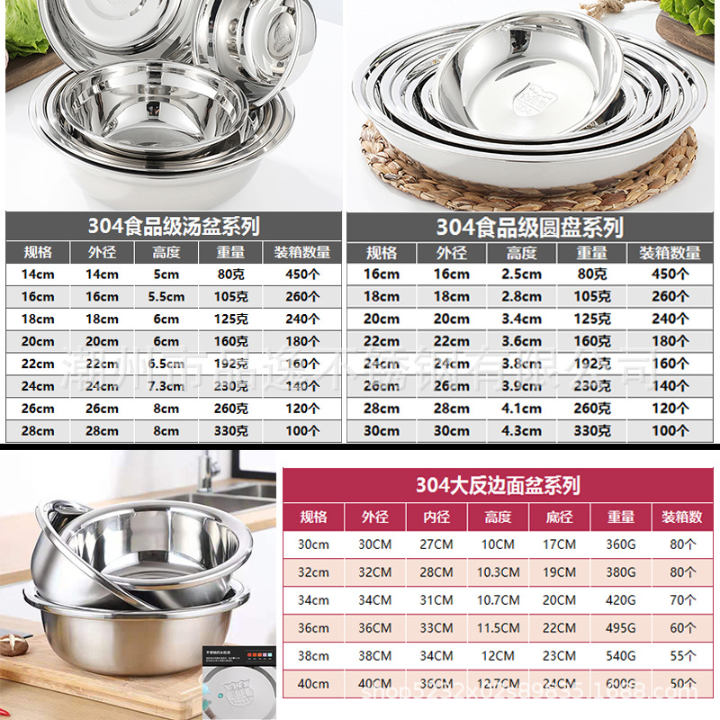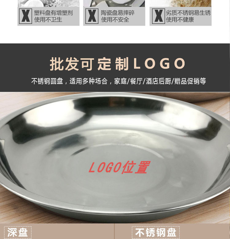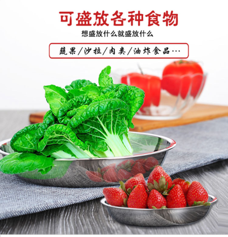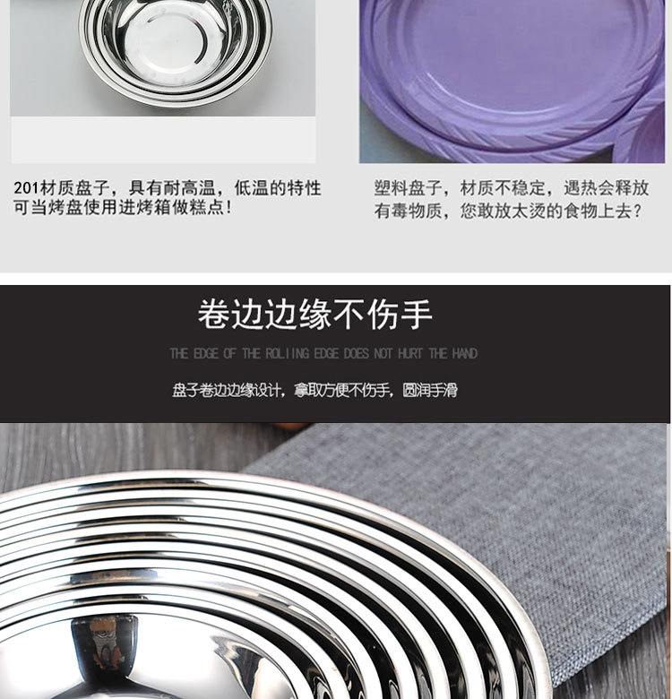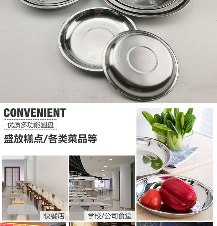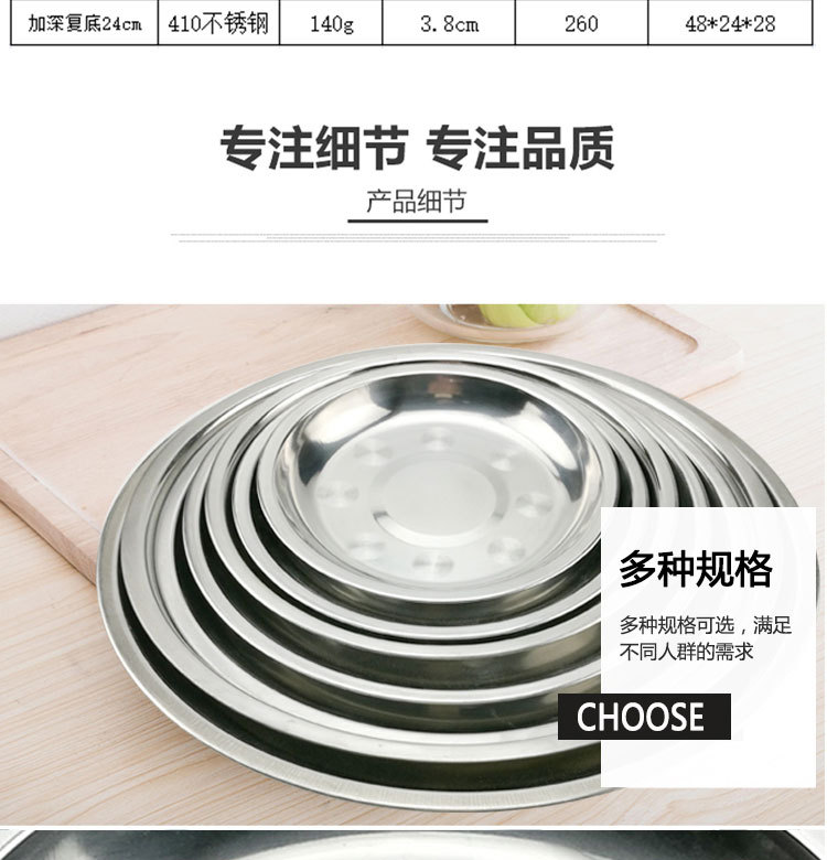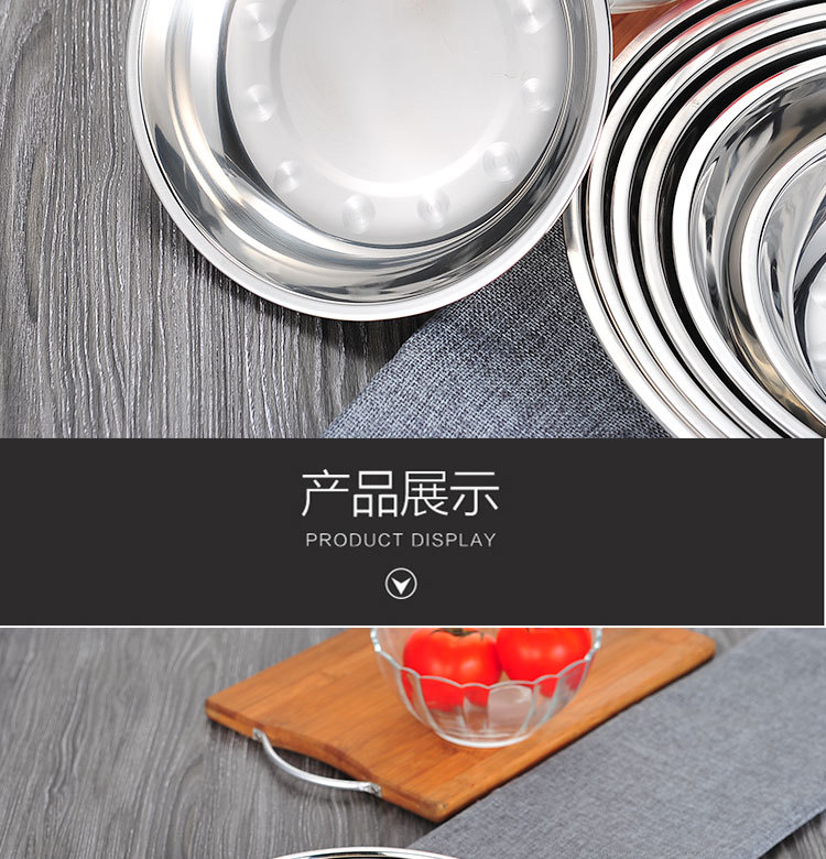 도매 스테인레스 스틸 트레이 304 식품 등급 플레이트 라운드 딥 플레이트 가정용 주방 학교 매점 생선 요리스토어 가기